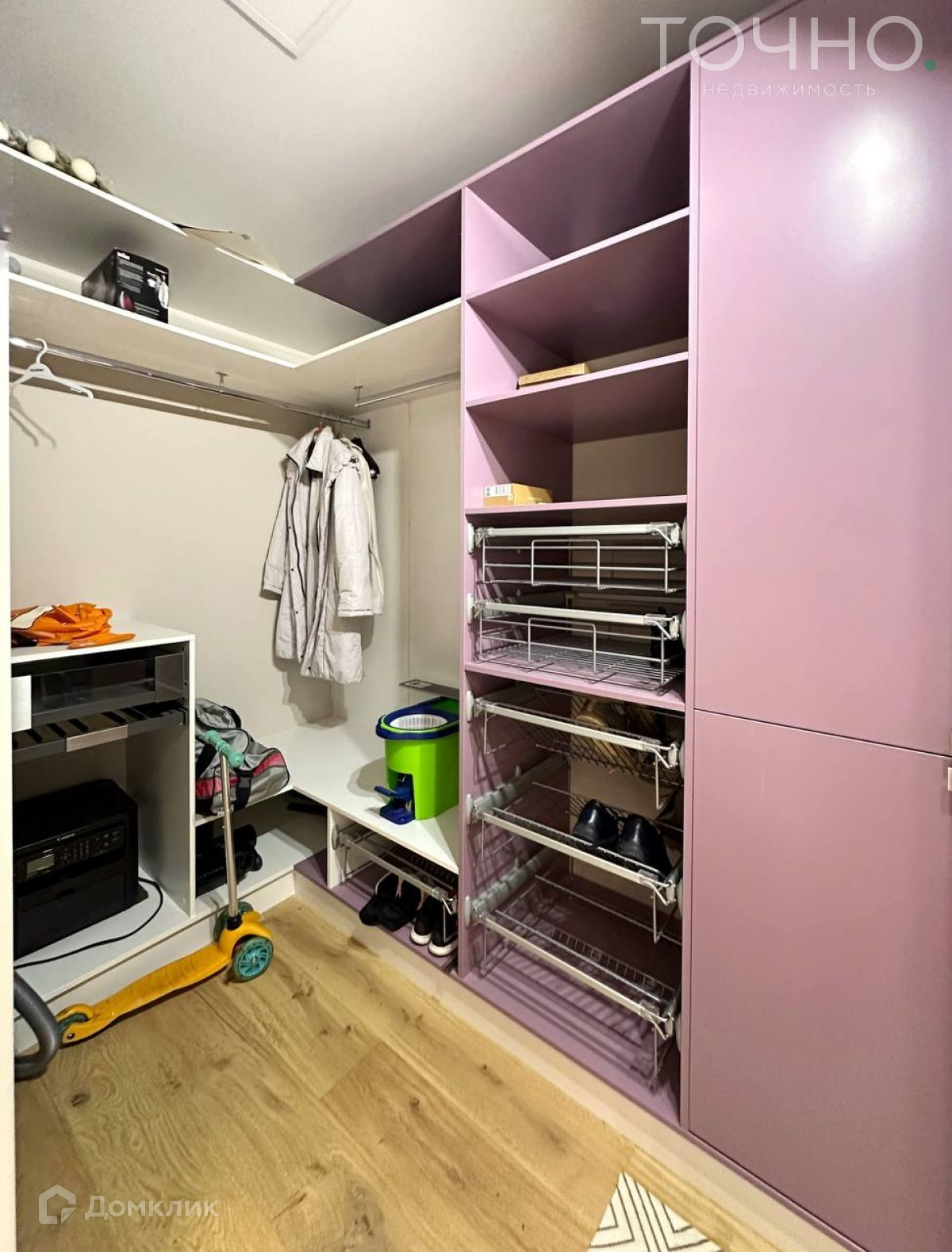 Есть гардеробная большая и шкаф в прихожей