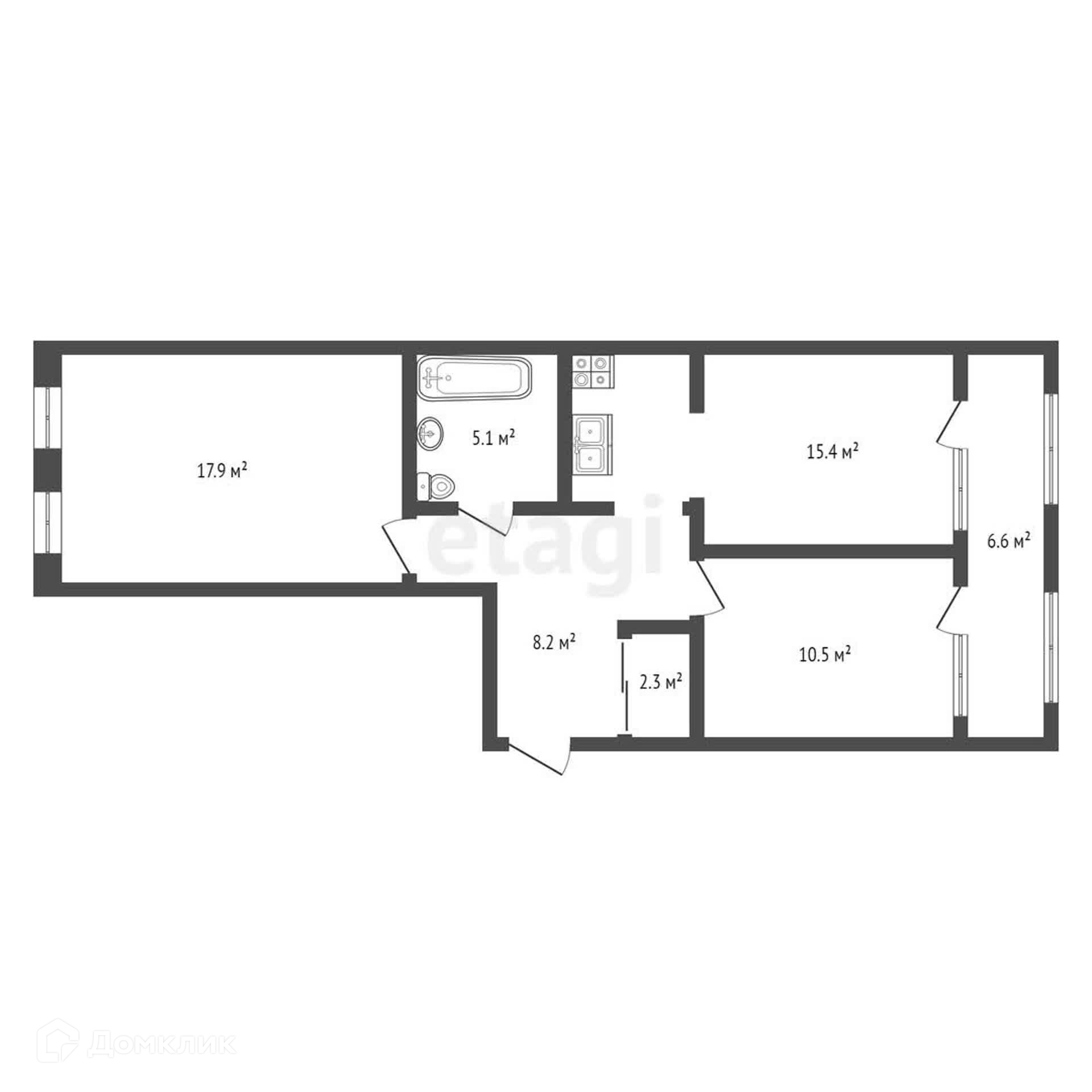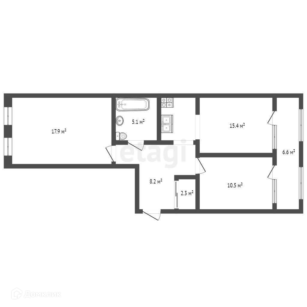 Большая кухня-гостиная - 17,9 кв.м., просторные комнаты - 15,4 кв.м. и 10,5 кв.м. и уютная лоджия - 6,6 кв.м. - планировочное решение не оставит равнодушным вашу семью.