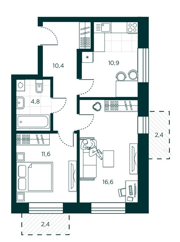 Жилая площадь 28.2 м2