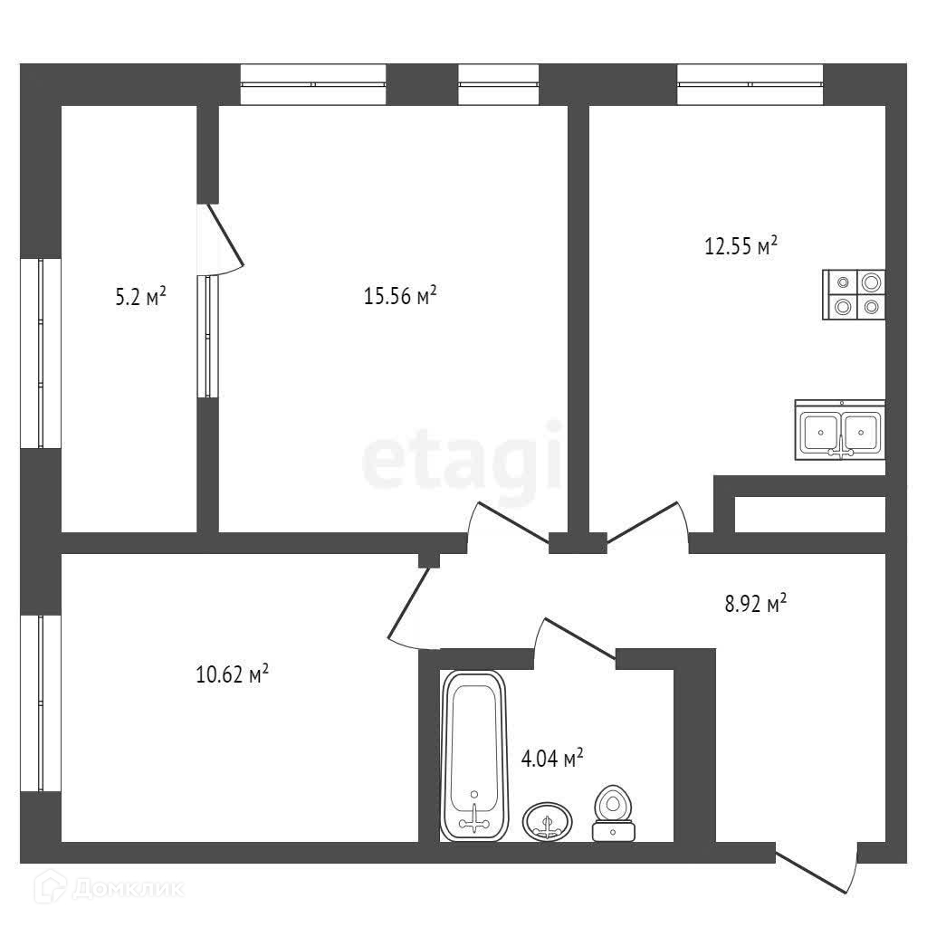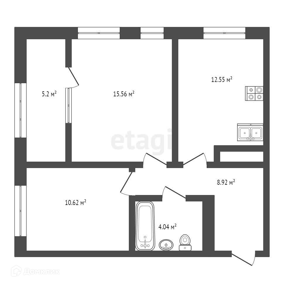 Жилая площадь - 26.18 (Kомната 15,56 кв.м. и 10,62 кв.м.) Площадь куxни - 12.55 кв.м.