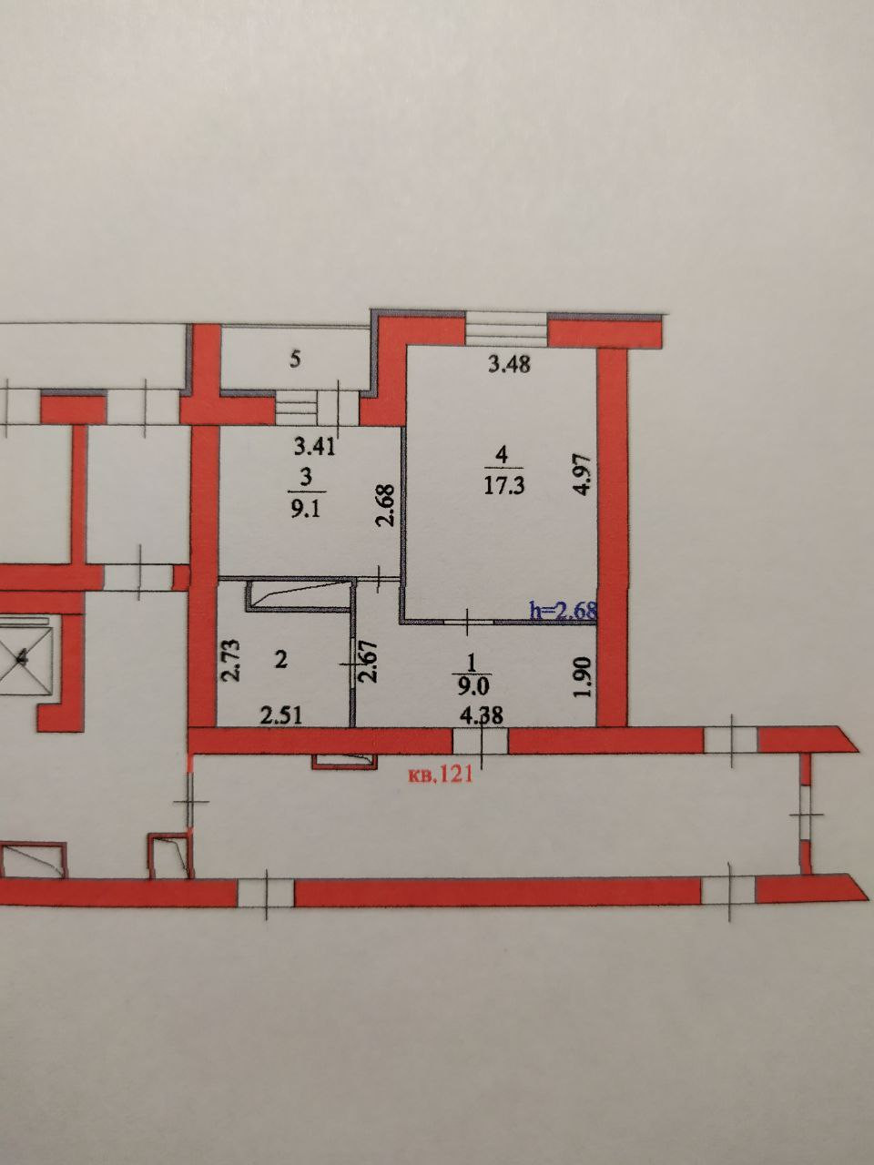 Жилая площадь 17.3 м2