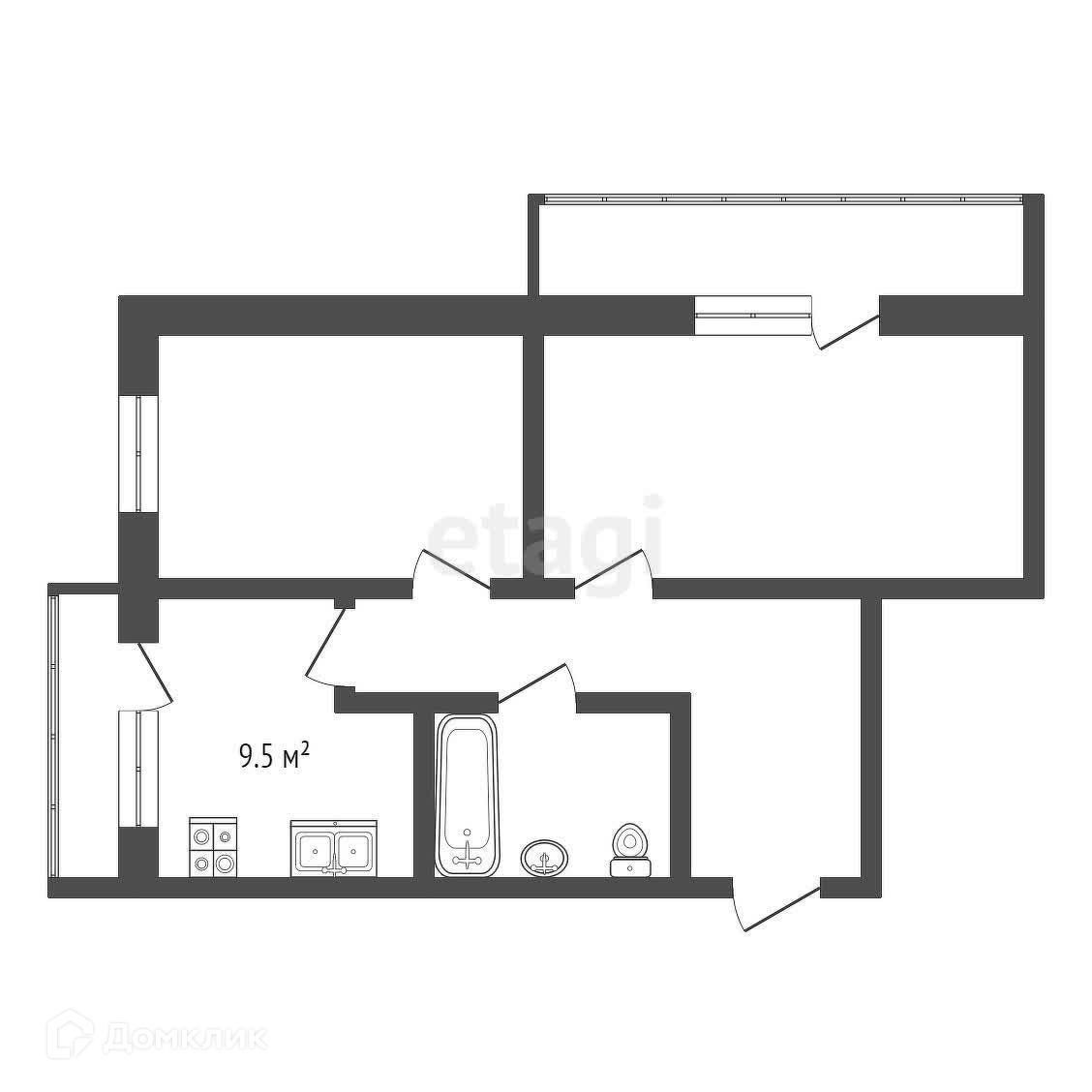 Площадь кухни 9.5 м2