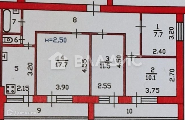 Комнаты: 17,7 кв.м, 11,5 кв.м, 10,1 кв. м и 7,7 кв.м.