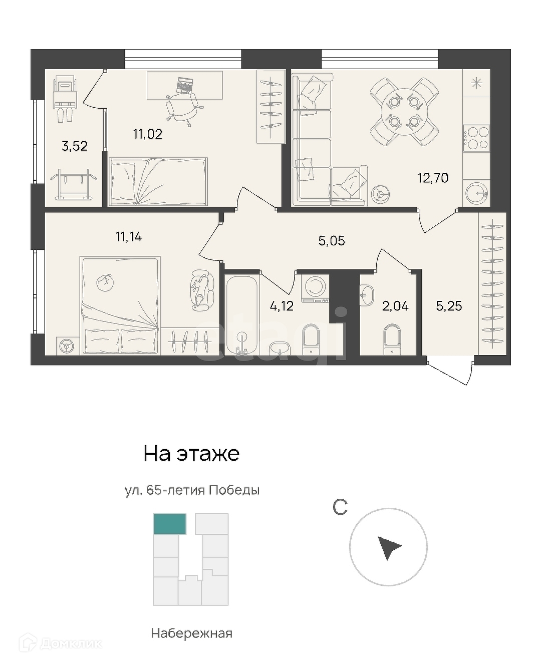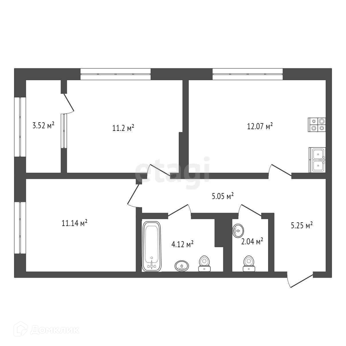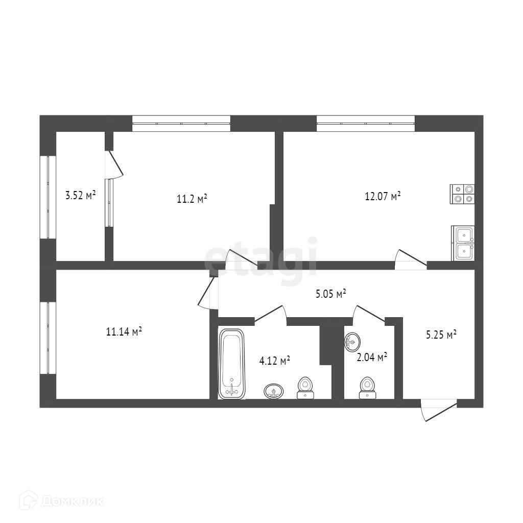 Общая площадь 55 м2