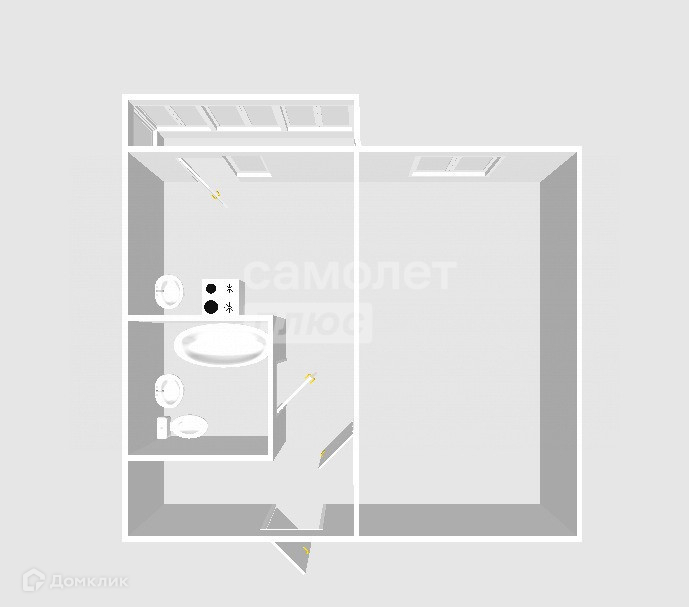Общaя площaдь: 35.3 кв. м.