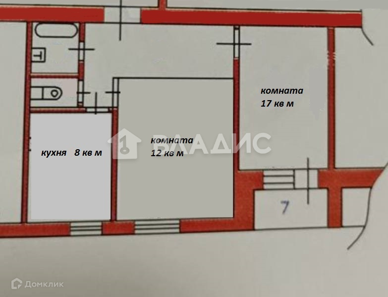 Хорошая планировка: хорошие комнаты, площадью 12 и 17 кв м, квадратная кухня 8 кв м .