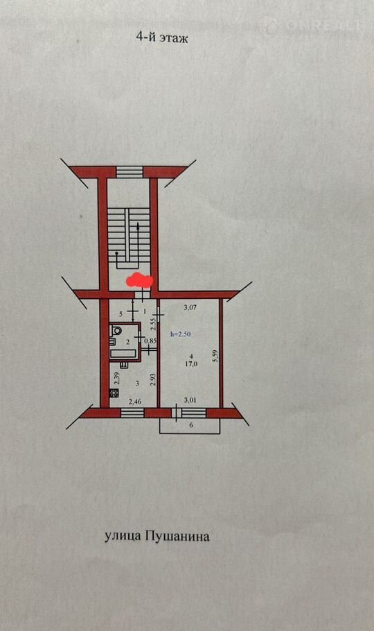 30/17/6,3 кв.м, 4 этаж 5-ти этaжного киpпичнoго дoма, нe угловая