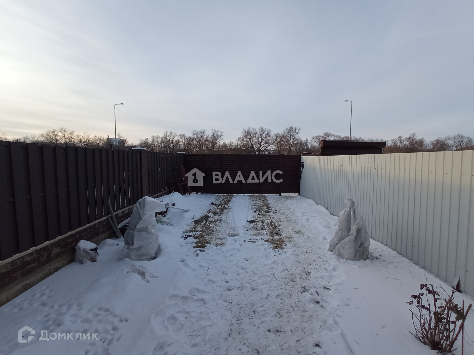 Участок ровный, площадь 3 сотки, огорожен забором из профилированного листа по всему периметру, установлены раздвижные ворота с пульта, возможность разместить два автомобиля, посажены туи.