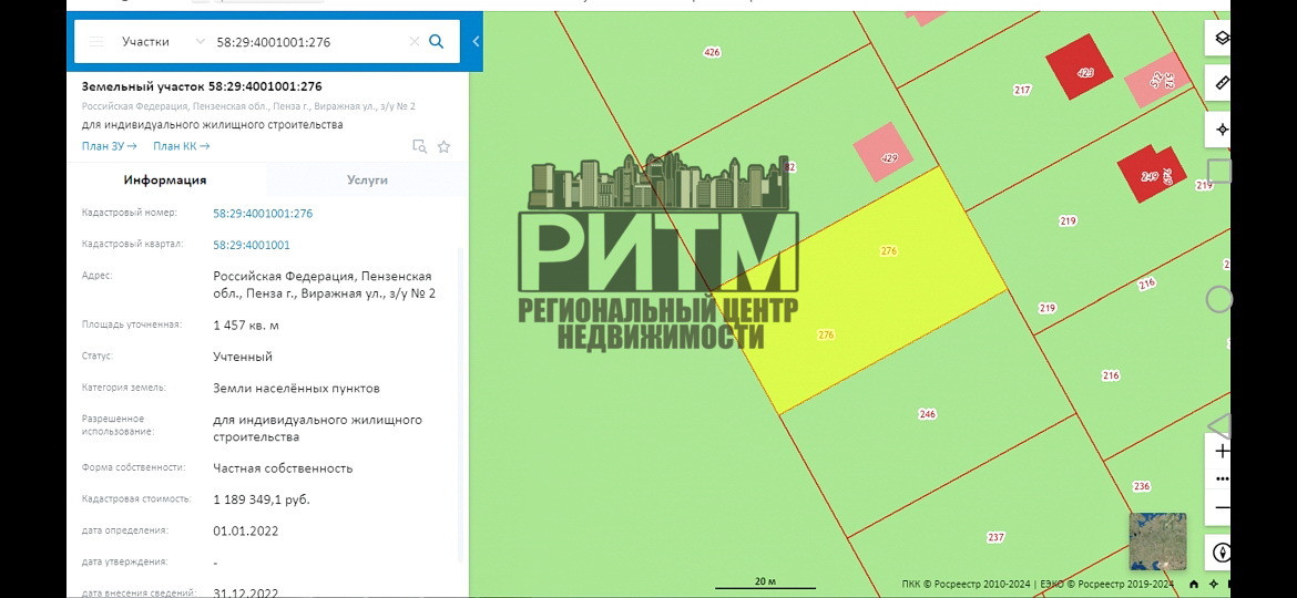 Участок под ИЖС, 14.5 сот. на продажу в Пензе, Виражная улица