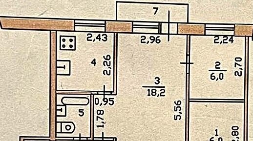 Жилая площадь 35.2 м2