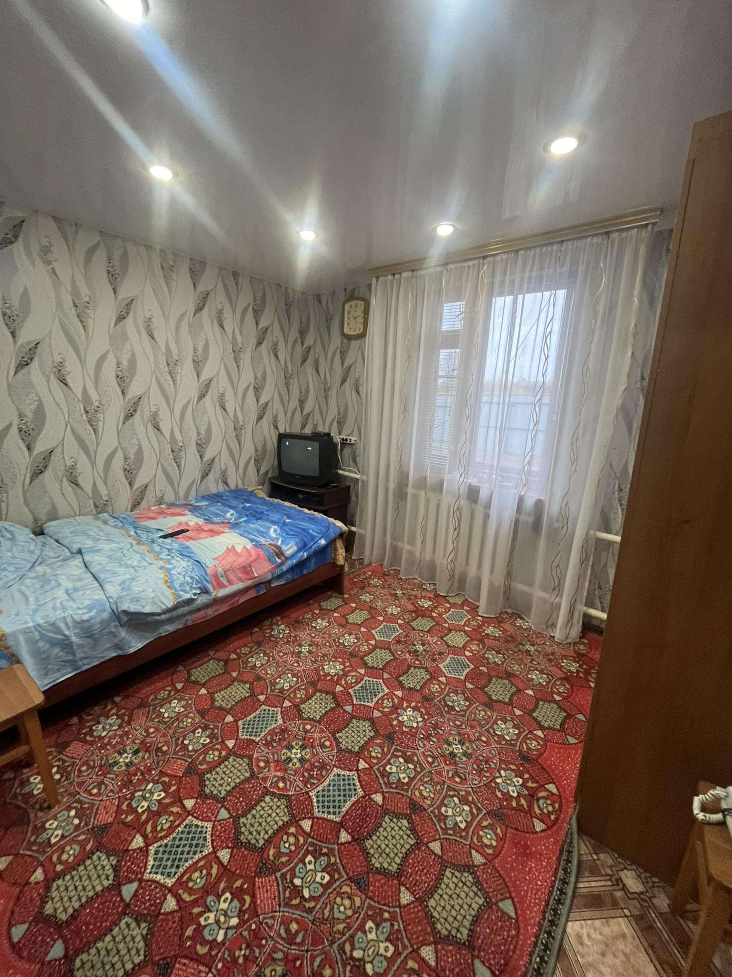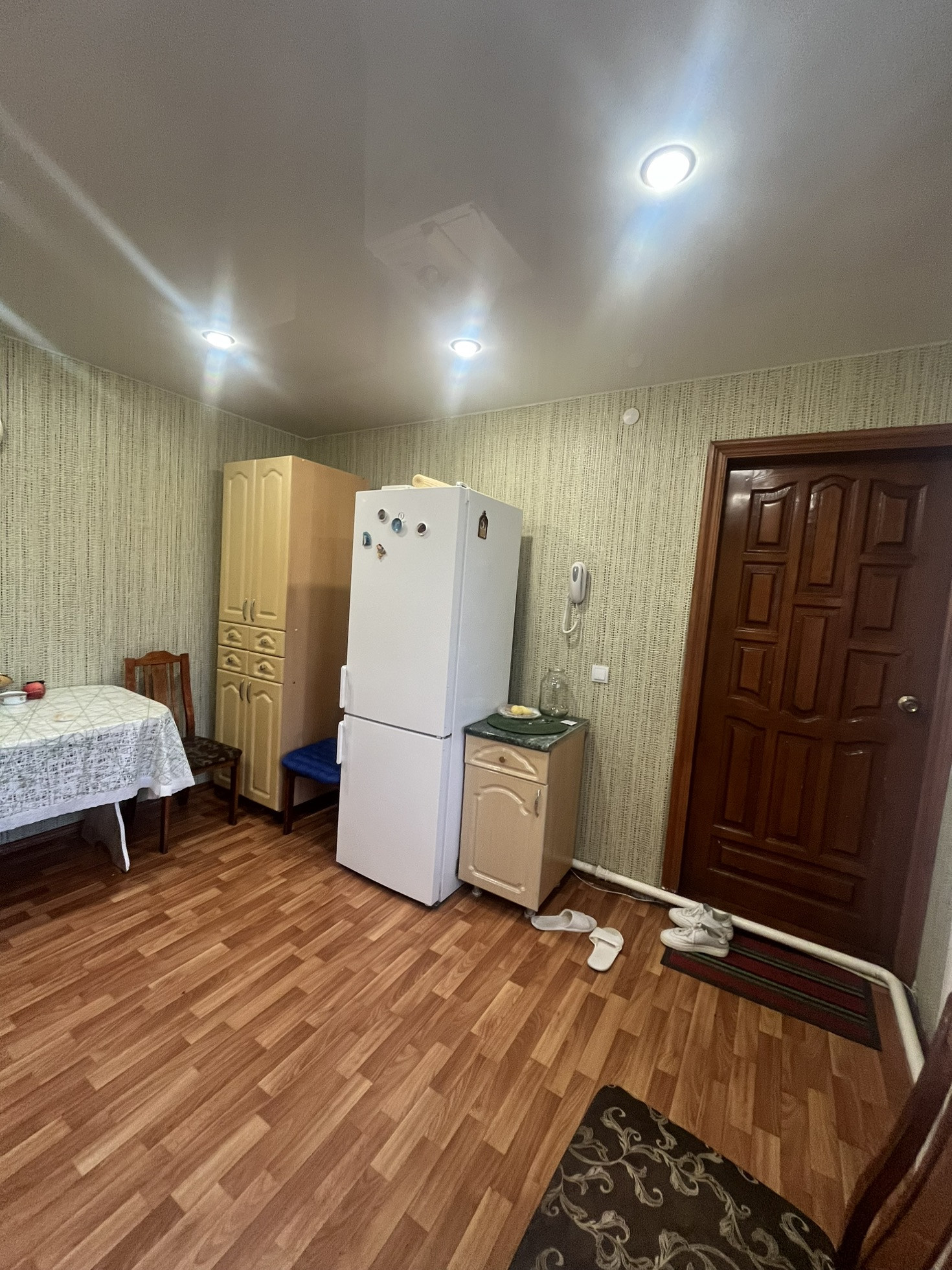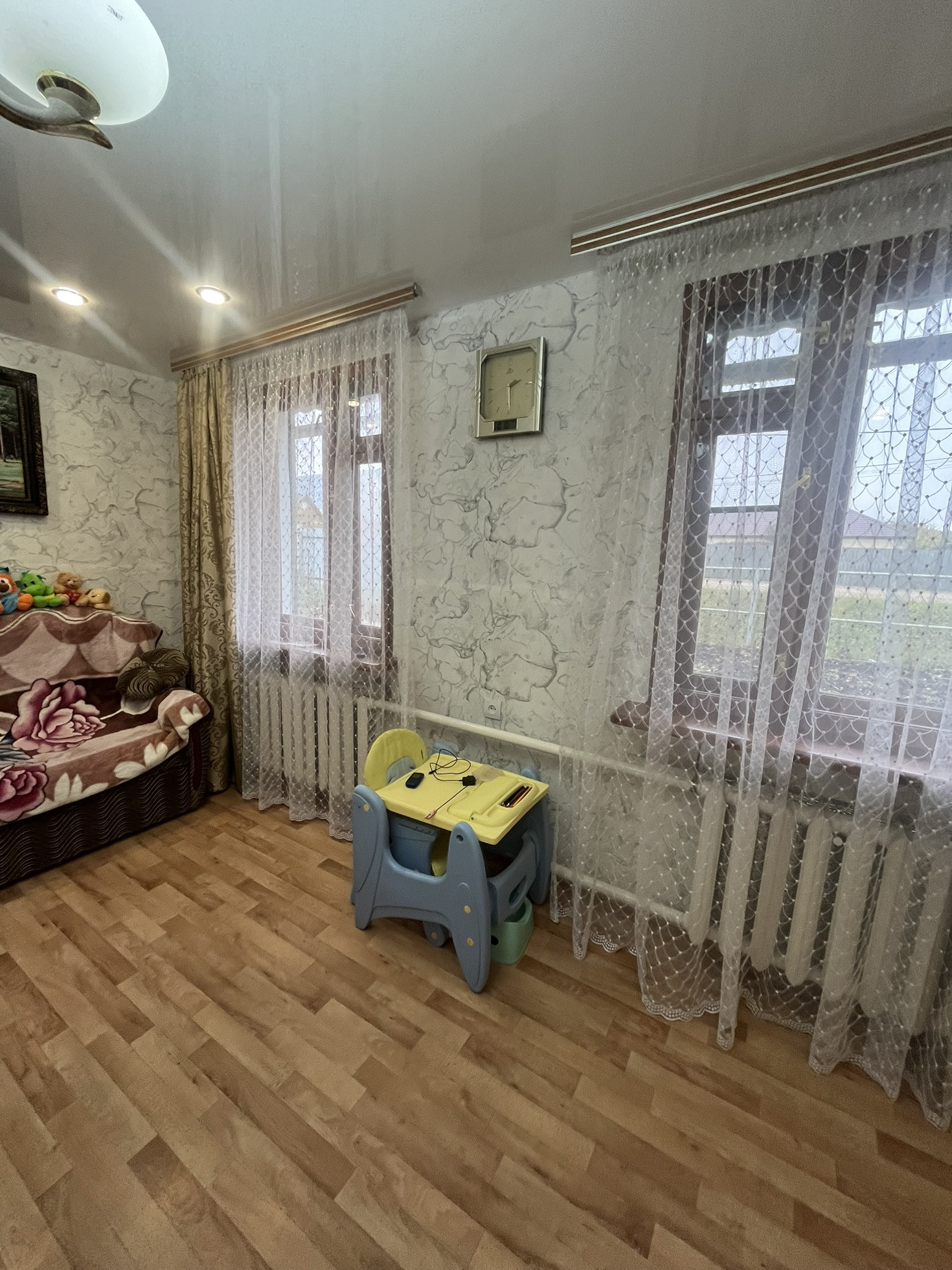 натяжные потолки , хорошие окна и двери , пол утепленный и линолеум