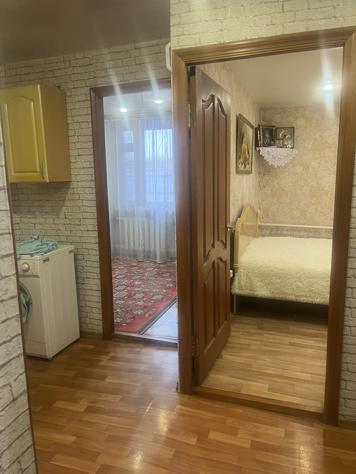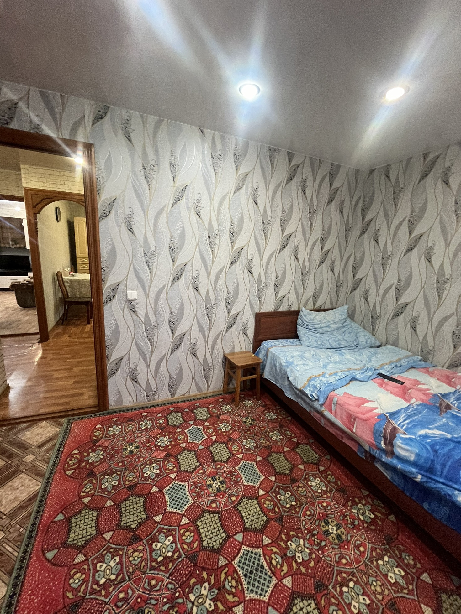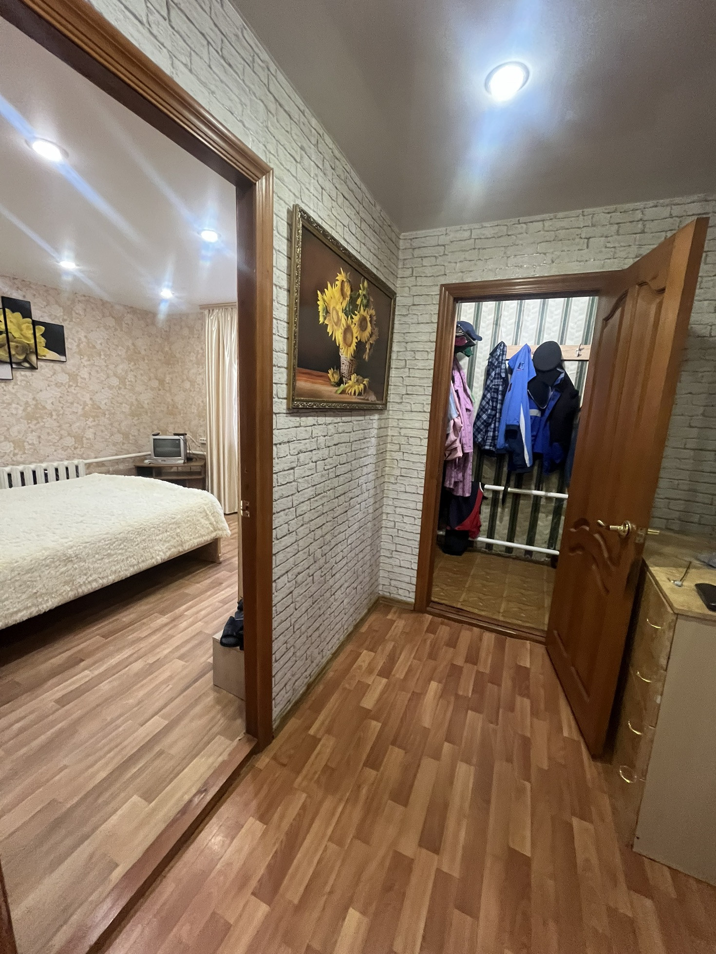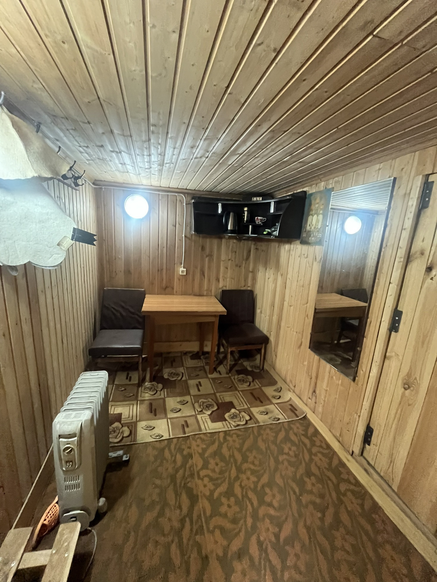 натяжные потолки , хорошие окна и двери , пол утепленный и линолеум