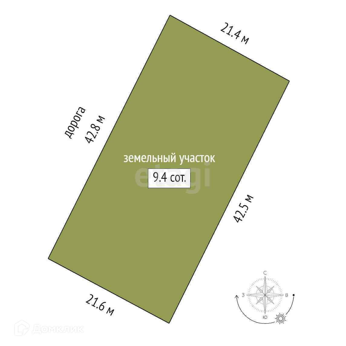 Площадь участка 9.4 сот.
