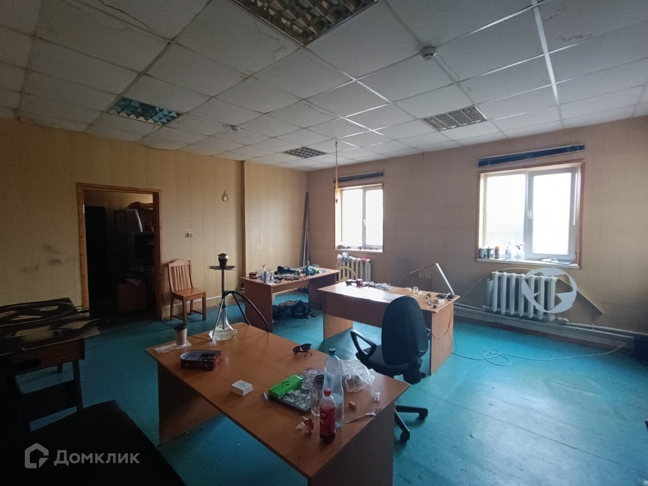 В помещение пластиковые окна, есть пожарная сигнализация и охранная сигнализация. В помещении остаются столы, диван.