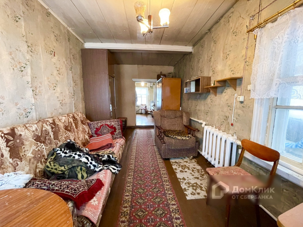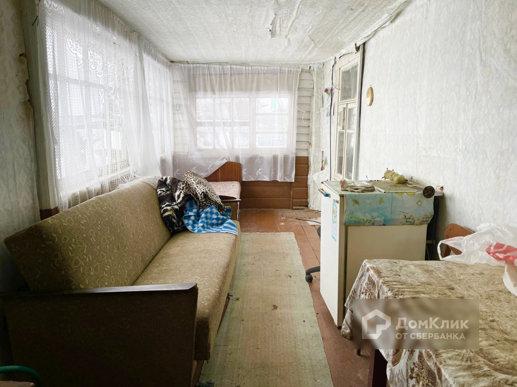 Планировка: крыльцо, терраса, туалет с выгребной ямой, кухня, комната. Окна деревянные, дом требует ремонта.