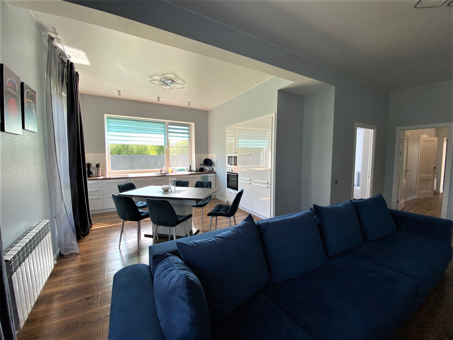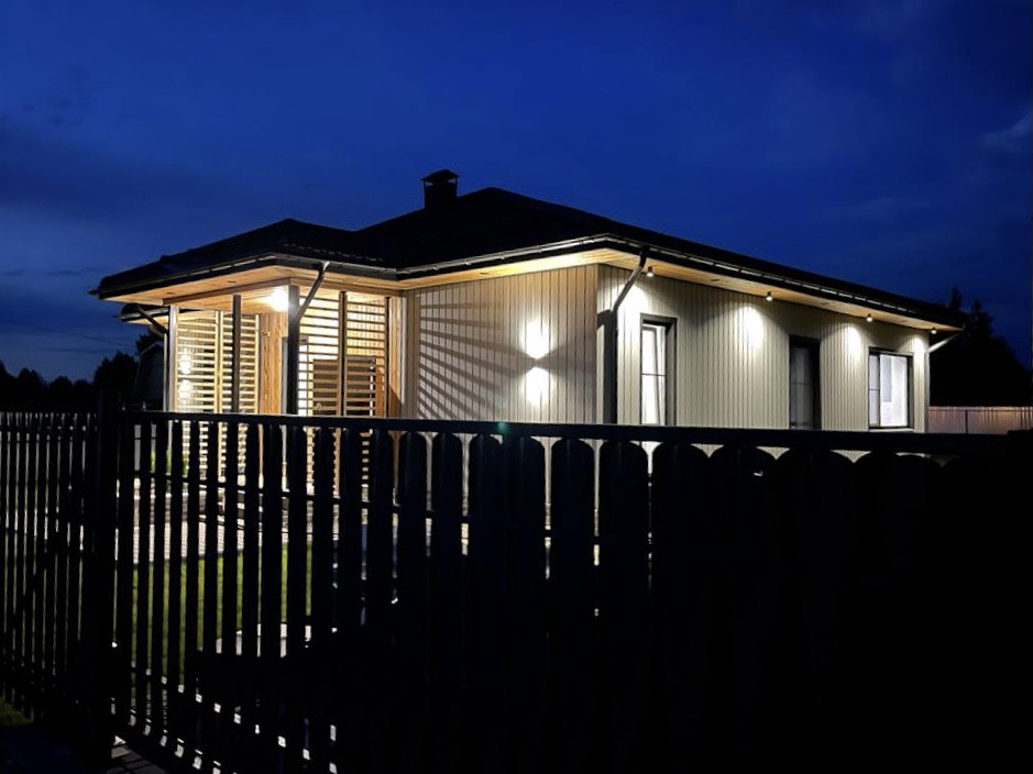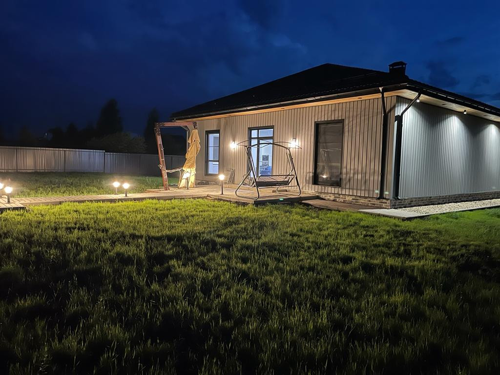 Продается современный одноэтажный дом с отличным ремонтом, площадью 130 кв.м. пригодный для круглогодичного проживания со всеми коммуникациями. Расположен на огороженном участке 7.2 сотки, плюс 1.5 сотки перед участком, для ИЖС, в г. Переславль и 120 км. от МКАД по Ярославскому ш. Дом построен на ленточном армированном фундаменте. Фасад дома отделан планкен лиственница, три другие стороны-металлический сайдинг. Крыша фальцевая кровля. Внутренняя отделка: натяжные потолки, стены – выровнены гипсокартоном, на полу ламинат и плитка. Дверь стальная, утепленная. Окна двухкамерные стеклопакеты - 3 стекла. Электричество – 15кВт, вода из скважины заведена в дом, канализация – септик, установлена сантехника, газ по границе, есть видеонаблюдение и оригинальная подсветка дома. Отопление-электрическое от электрокотла. В доме большая кухня - гостиная, холл, три комнаты, санузел, кладовка и сауна. Во дворе выложены дорожки из плитки и оборудована стоянка для машин, есть мангальная зона.  Вся новая мебель и техника остается при продаже. Инфраструктура города в шаговой доступности.