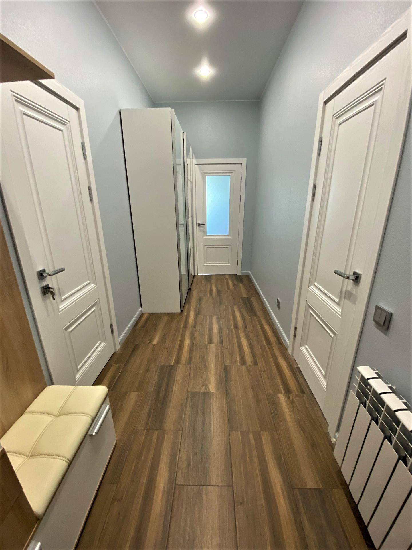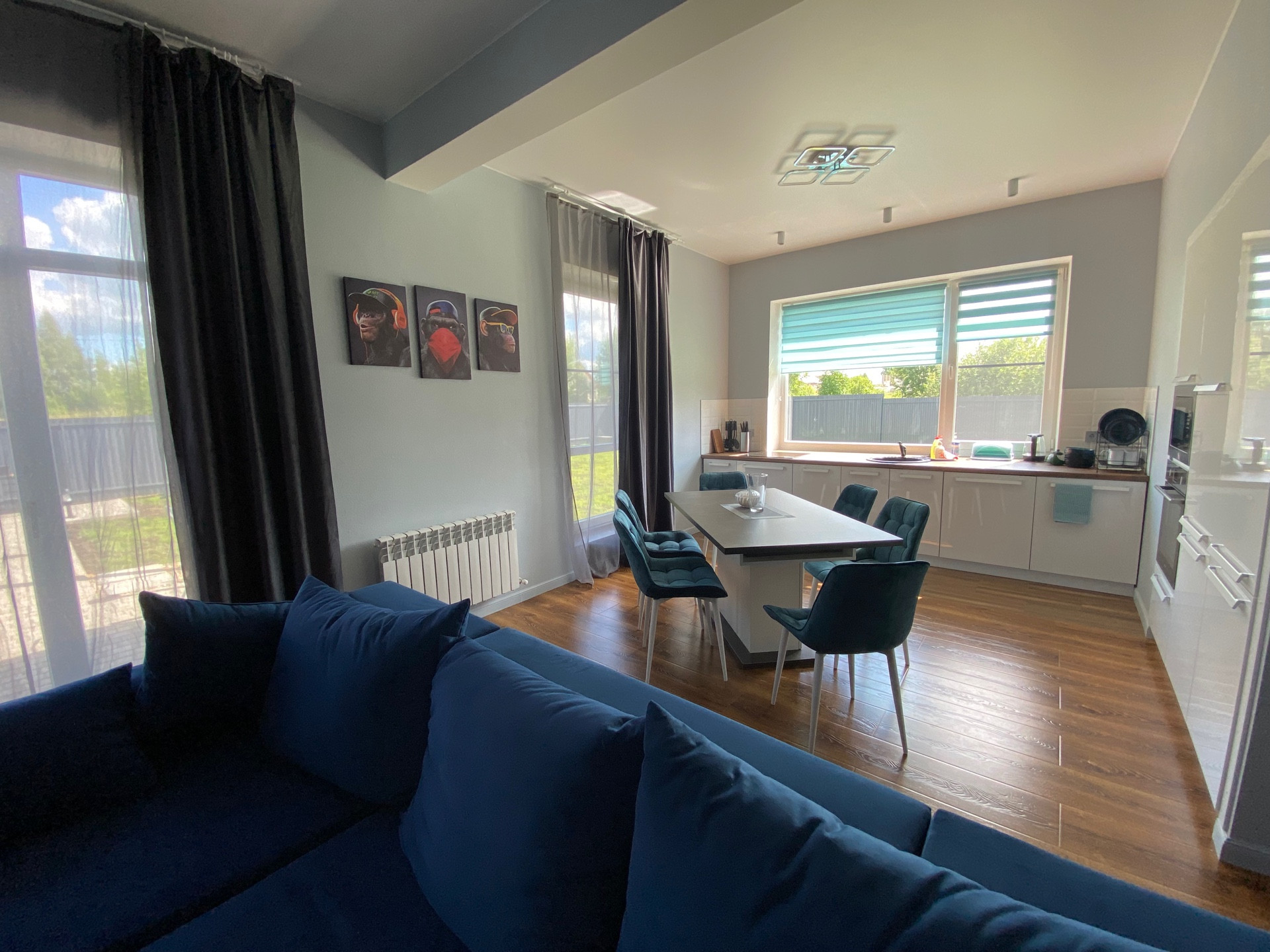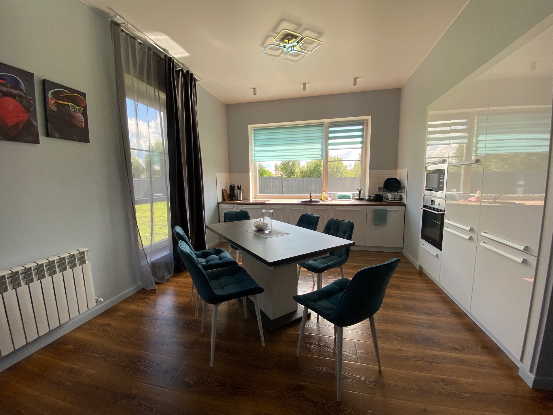 Продается современный одноэтажный дом с отличным ремонтом, площадью 130 кв.м. пригодный для круглогодичного проживания со всеми коммуникациями. Расположен на огороженном участке 7.2 сотки, плюс 1.5 сотки перед участком, для ИЖС, в г. Переславль и 120 км. от МКАД по Ярославскому ш. Дом построен на ленточном армированном фундаменте. Фасад дома отделан планкен лиственница, три другие стороны-металлический сайдинг. Крыша фальцевая кровля. Внутренняя отделка: натяжные потолки, стены – выровнены гипсокартоном, на полу ламинат и плитка. Дверь стальная, утепленная. Окна двухкамерные стеклопакеты - 3 стекла. Электричество – 15кВт, вода из скважины заведена в дом, канализация – септик, установлена сантехника, газ по границе, есть видеонаблюдение и оригинальная подсветка дома. Отопление-электрическое от электрокотла. В доме большая кухня - гостиная, холл, три комнаты, санузел, кладовка и сауна. Во дворе выложены дорожки из плитки и оборудована стоянка для машин, есть мангальная зона.  Вся новая мебель и техника остается при продаже. Инфраструктура города в шаговой доступности.