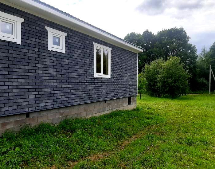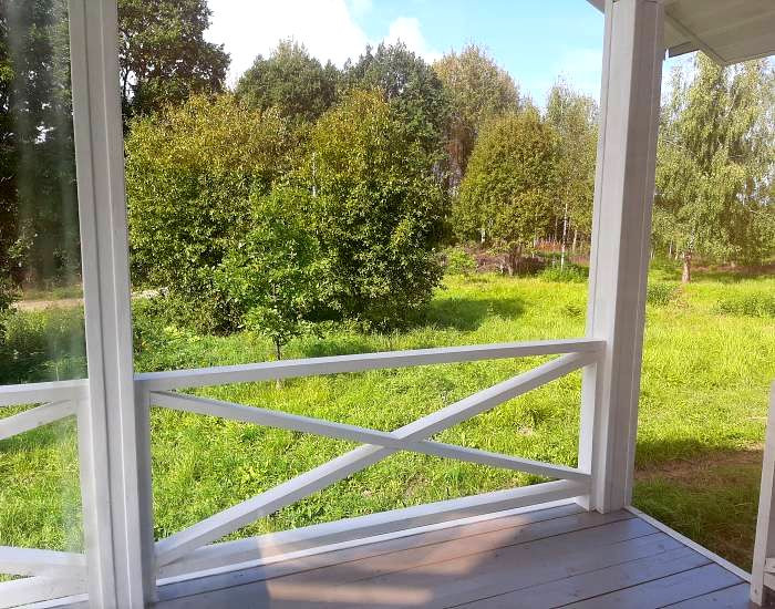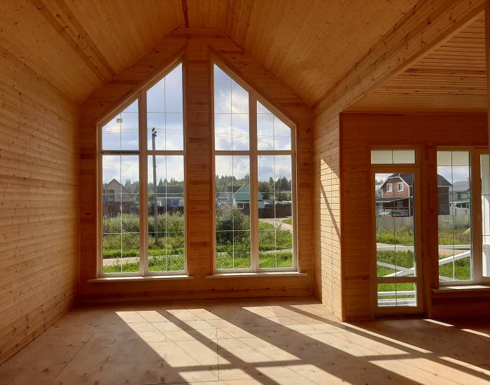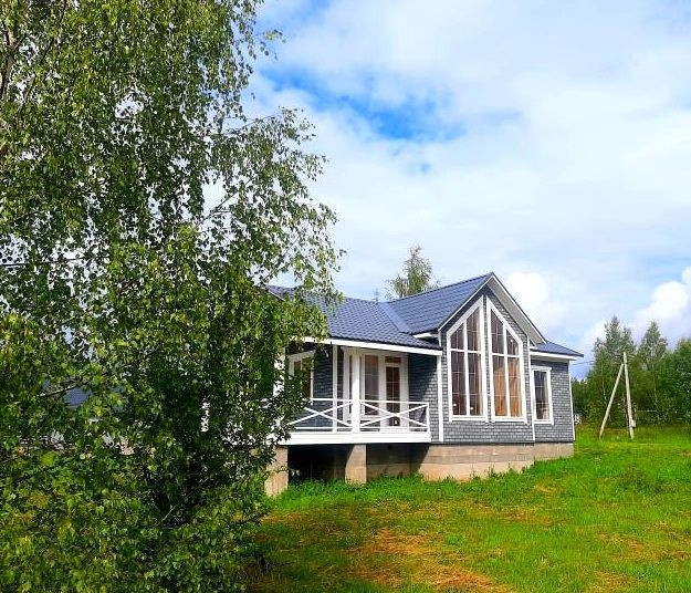 В доме функциональная планировка: крыльцо, тамбур, кухня-гостиная с панорамным окном (солнечная сторона), санузел, холл, три полноценные комнаты, из гостиной выход на  веранду.