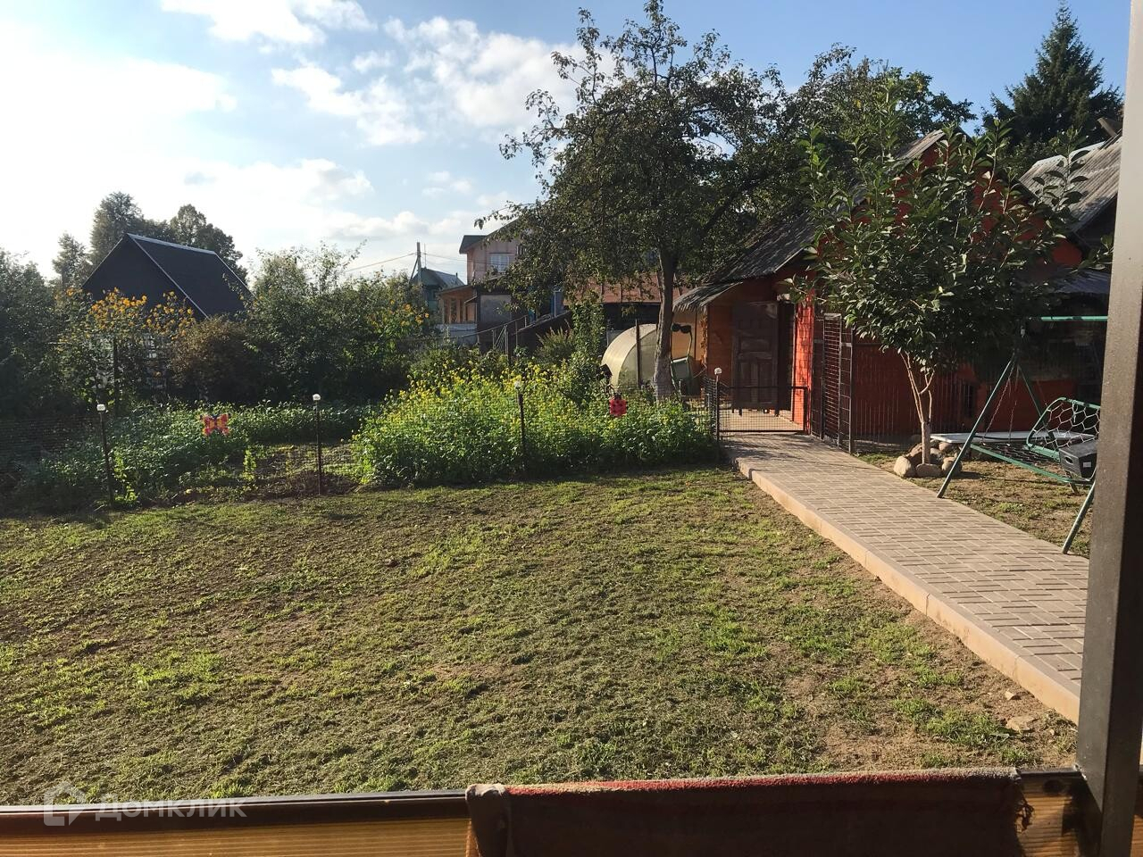 Земельный участок 5.87 соток, ровный, правильной формы, без уклона. Участок со всех сторон огорожен забором, на участке расположена уютная баня и хозблок. Территория вокруг дома выложена брусчаткой.