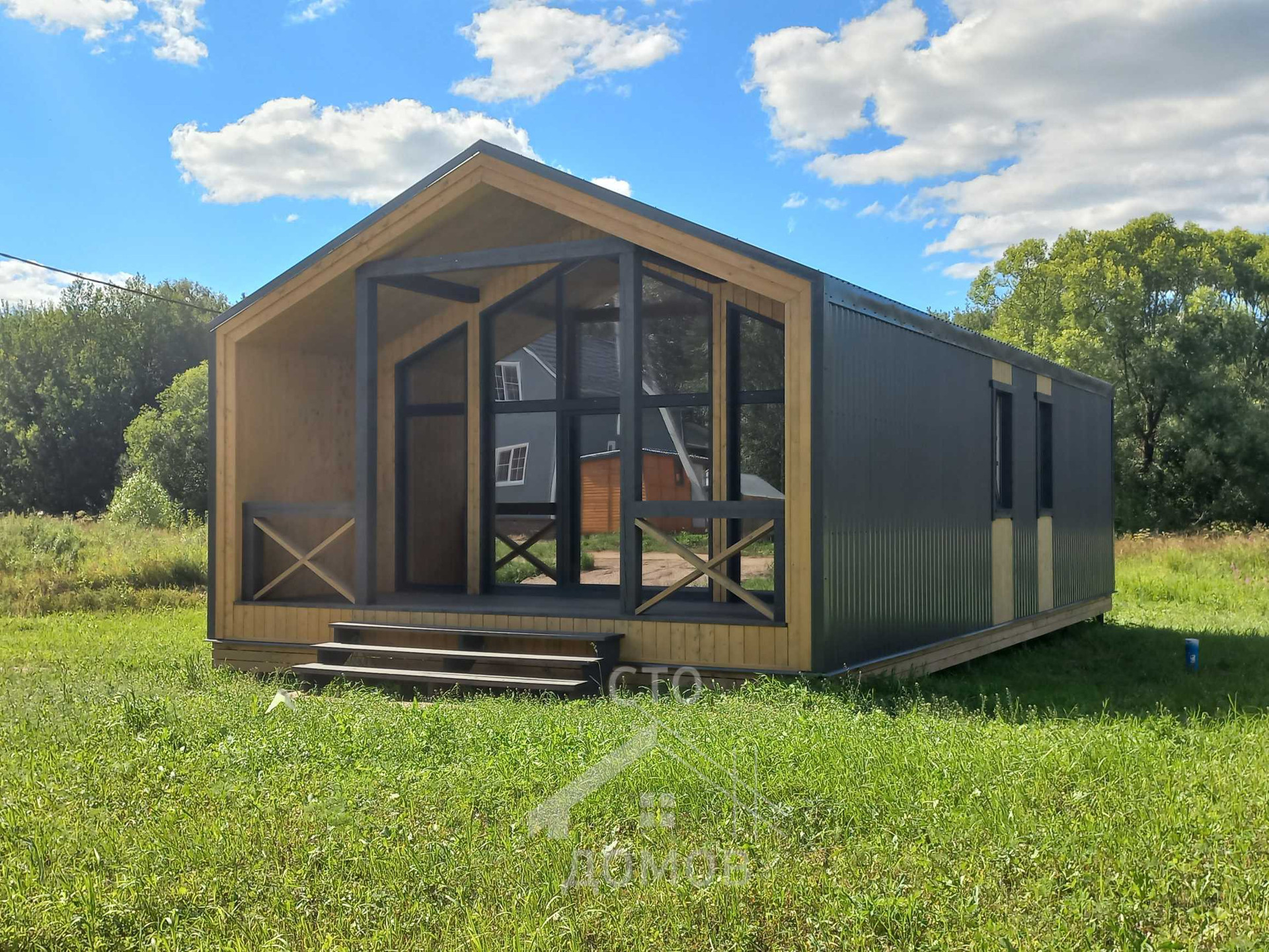 ✅️ДОМ общей площадью 100 кв. м. Возможна прописка. Зимняя комплектация, дом полностью утеплен (пол, крыша, стены 200 мм). Выдержит даже самые сильные морозы! Установлены качественные панорамные окна с высокой энергоэффективностью. Входная дверь с терморазрывом. Установлены межкомнатные двери. Пол - ламинат