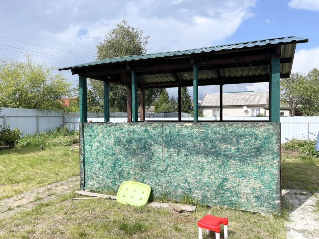 На участке имеется большой металлический гараж, кирпичный сарай, беседка, бассейн. Ворота оборудованы автоматикой.