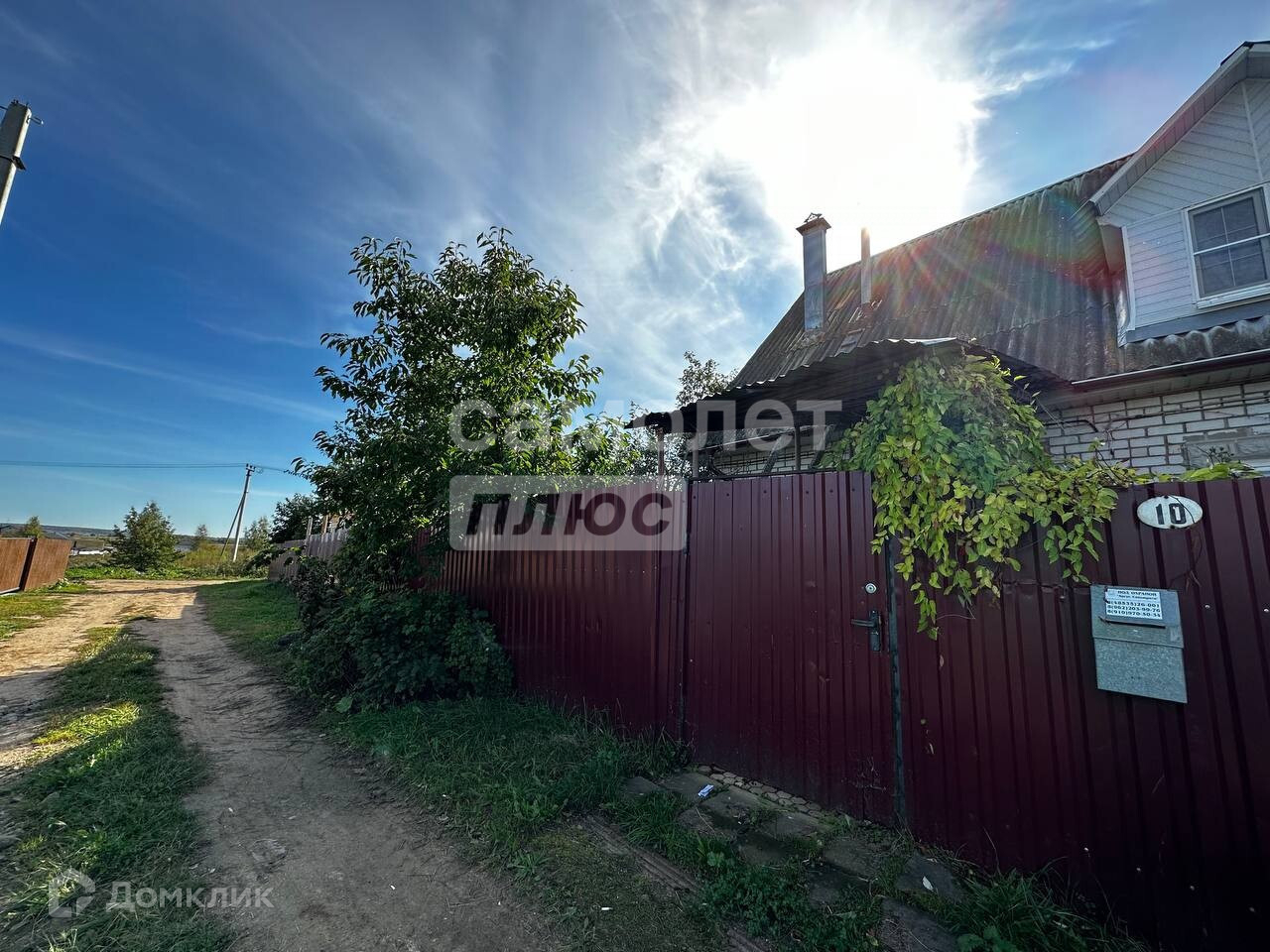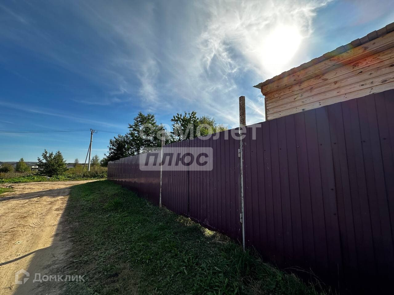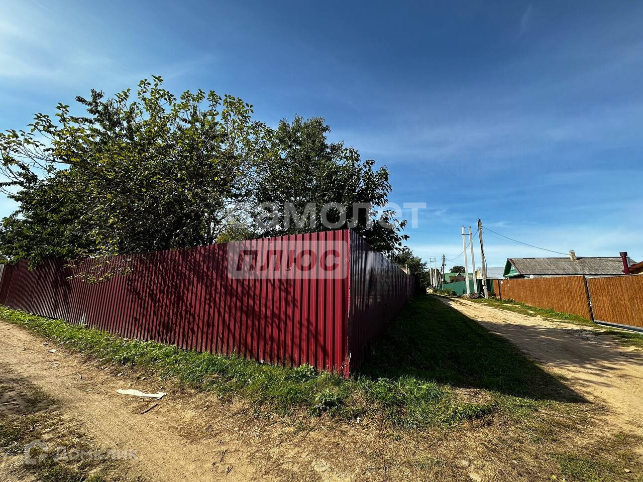 Участок 10 соток, ИЖС, ровный, с насаждениями, со всех сторон огорожен забором, есть гараж и ворота для въезда.