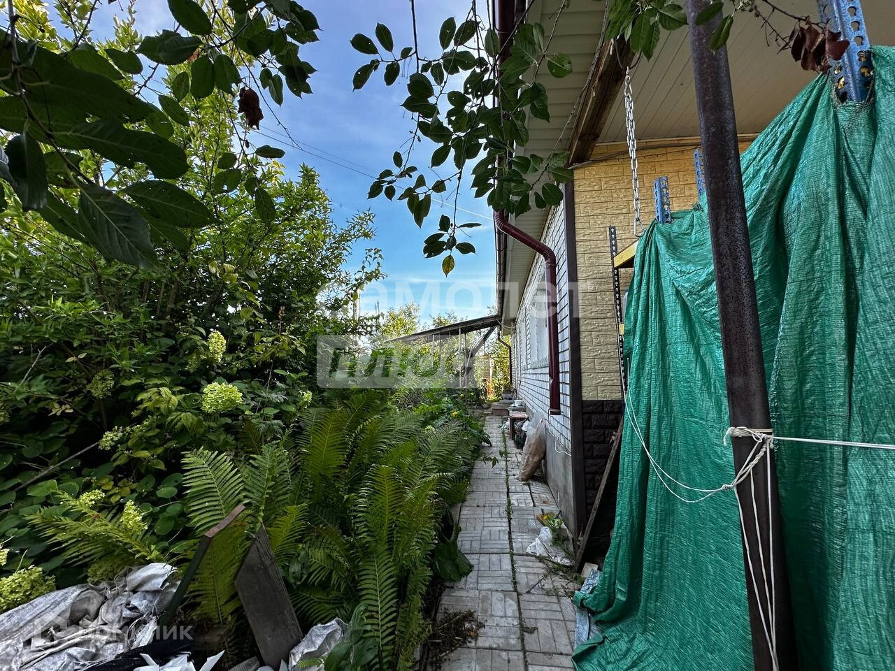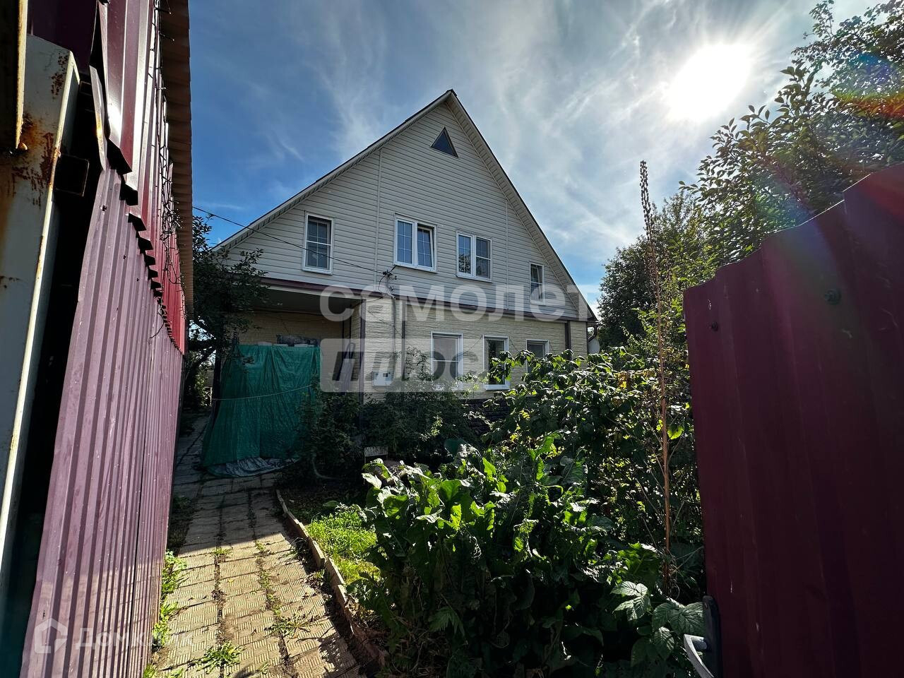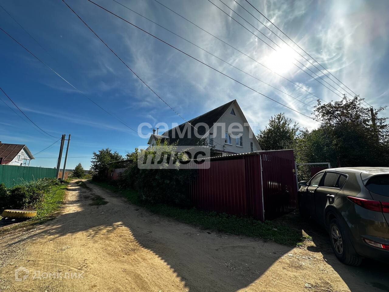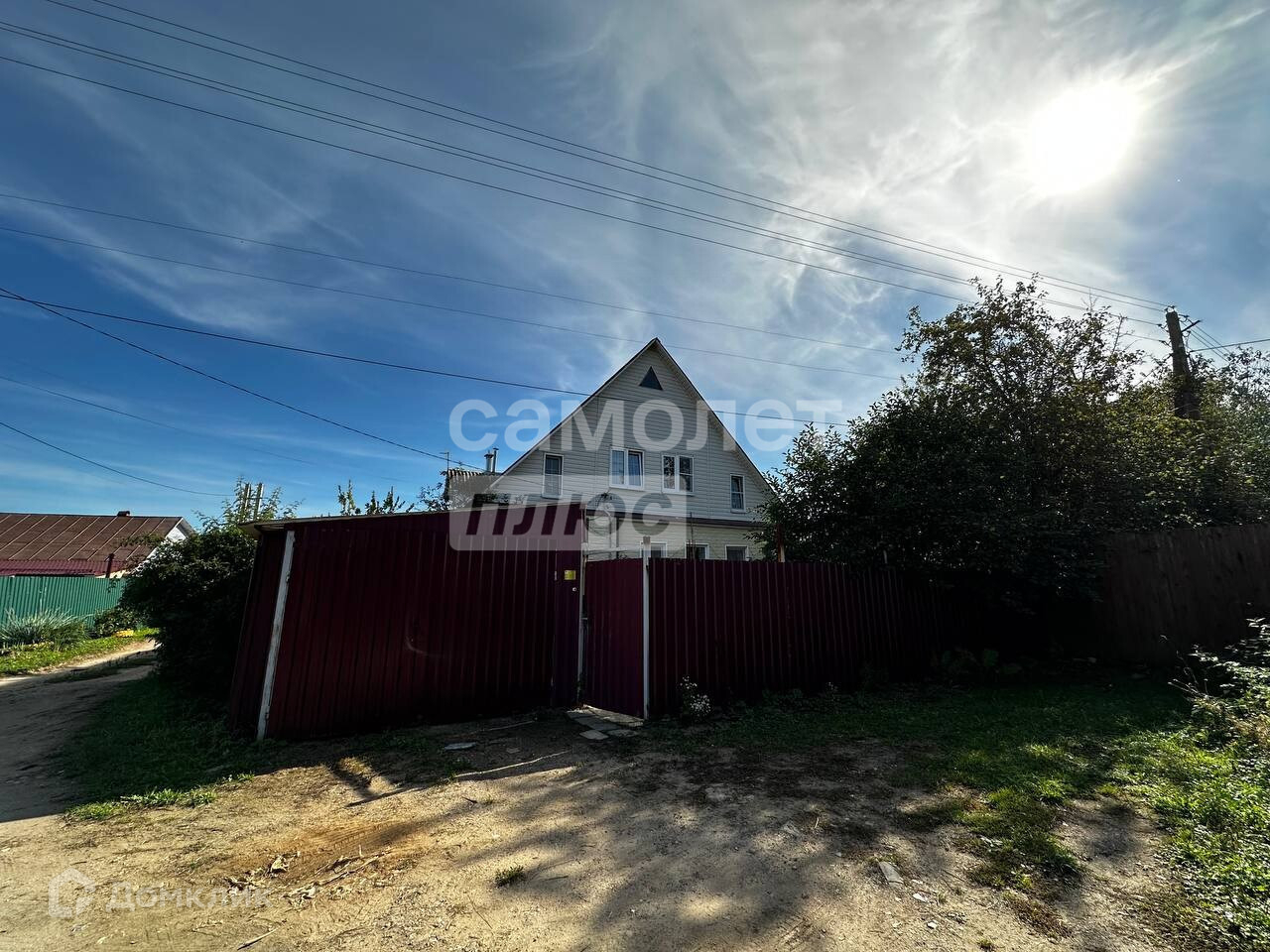 Участок 10 соток, ИЖС, ровный, с насаждениями, со всех сторон огорожен забором, есть гараж и ворота для въезда.