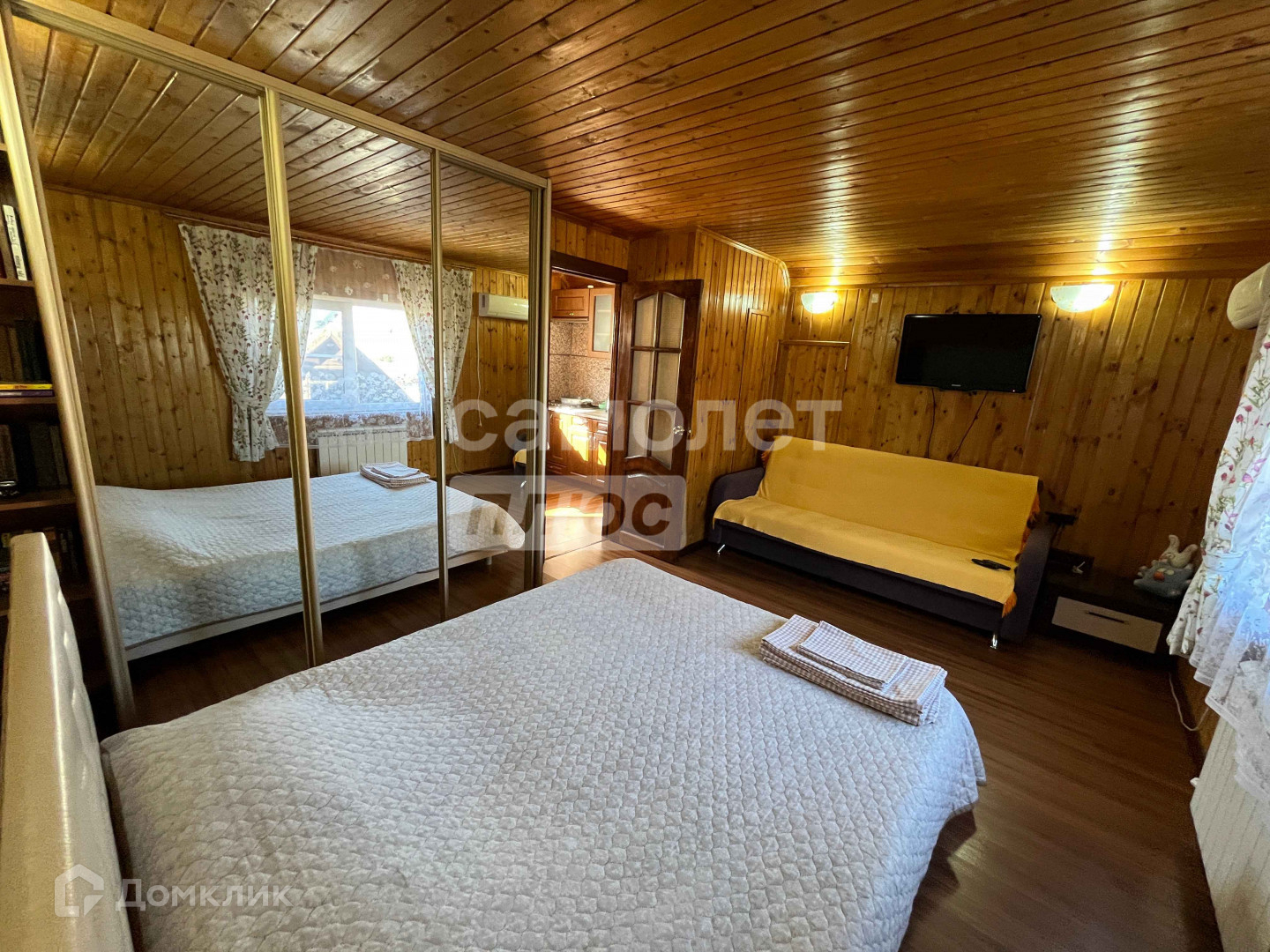 Гостевой дом-баня: На первом этаже прихожая, просторная комната для отдыха, парилка (на дровах), раздельный санузел. На втором этаже одна большая комната, кухня со встроенной техникой + установлен кондиционер.