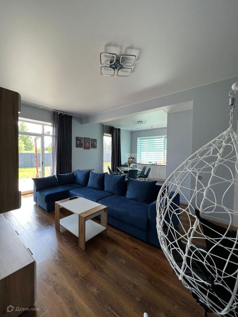Планировка: Прихожая, просторная кухня - гостиная, холл, три спальни, санузел, кладовка, сауна.