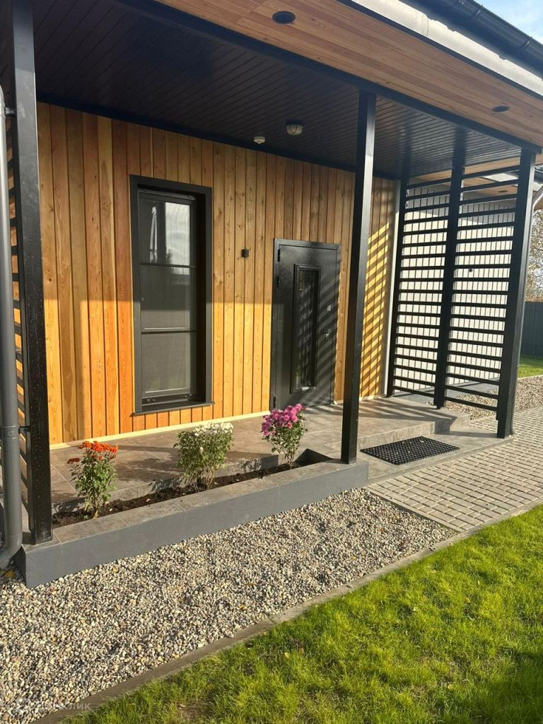 Дом: газобетонные блоки на армированном ленточном фундаменте. Отделка фасада-лиственница +металлический сайдинг. Крыша фальцевая кровля.