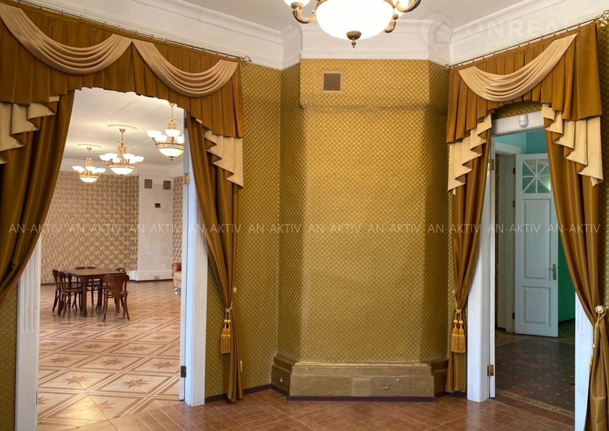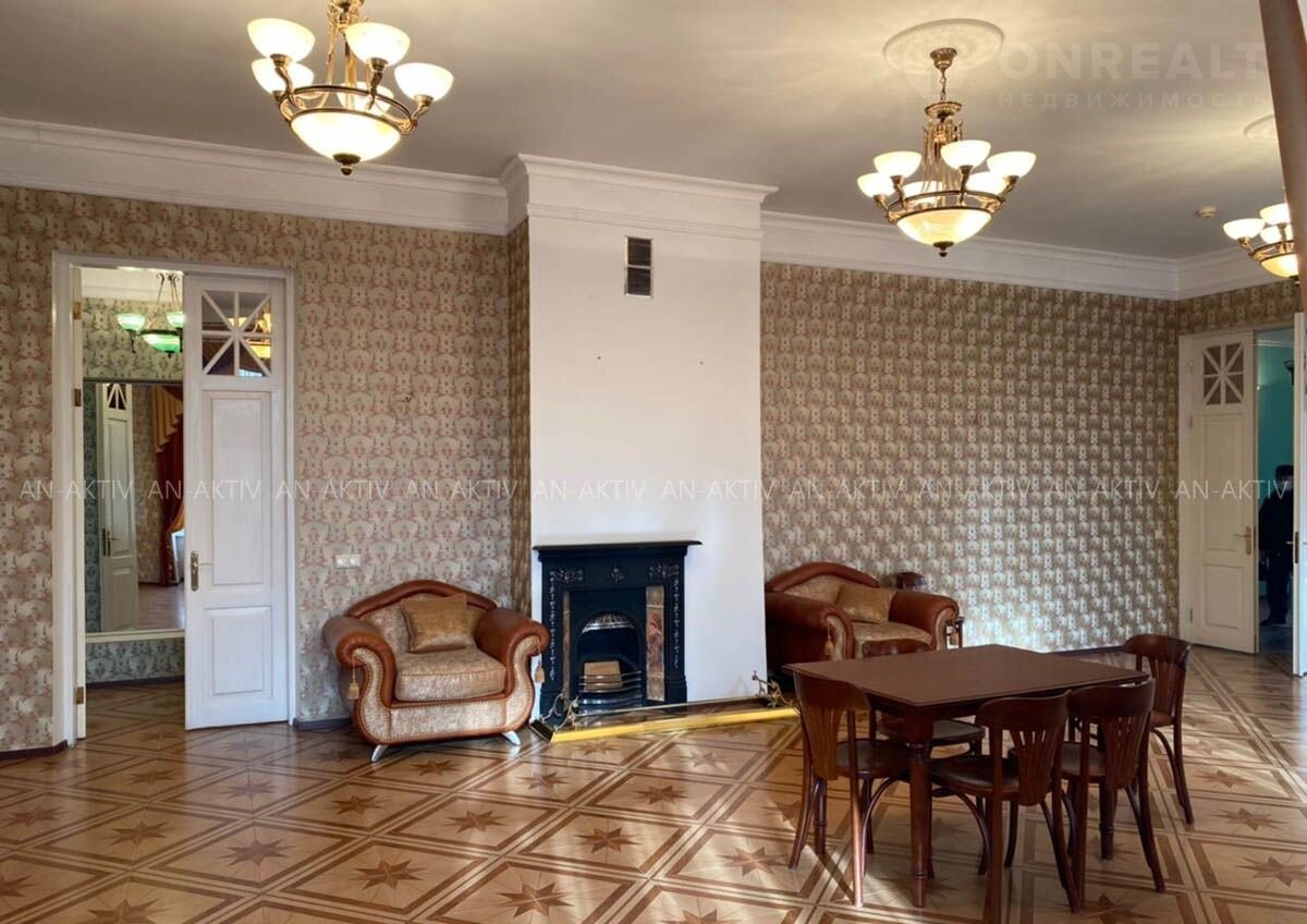 Планировка: 1-ый этаж: просторный зал, 5 комнат, прихожая, гостевой санузел, котельная, несколько подсобных помещений. Цокольный этаж: кухня, зал, подсобные помещения, туалет. Дом светлый, много больших окон. В доме 2 функционирующие печки с изразцами конца ХХ века и камин.