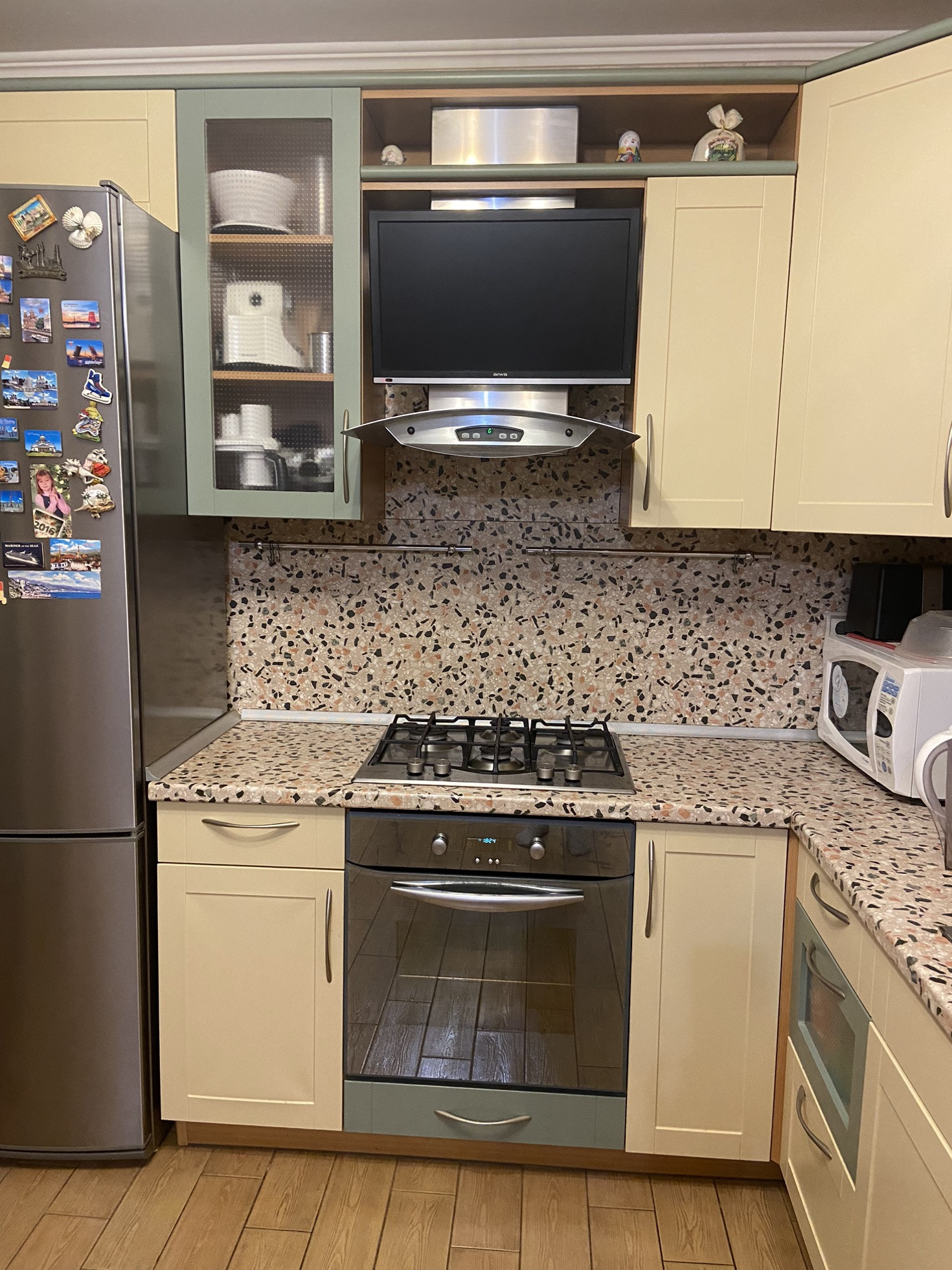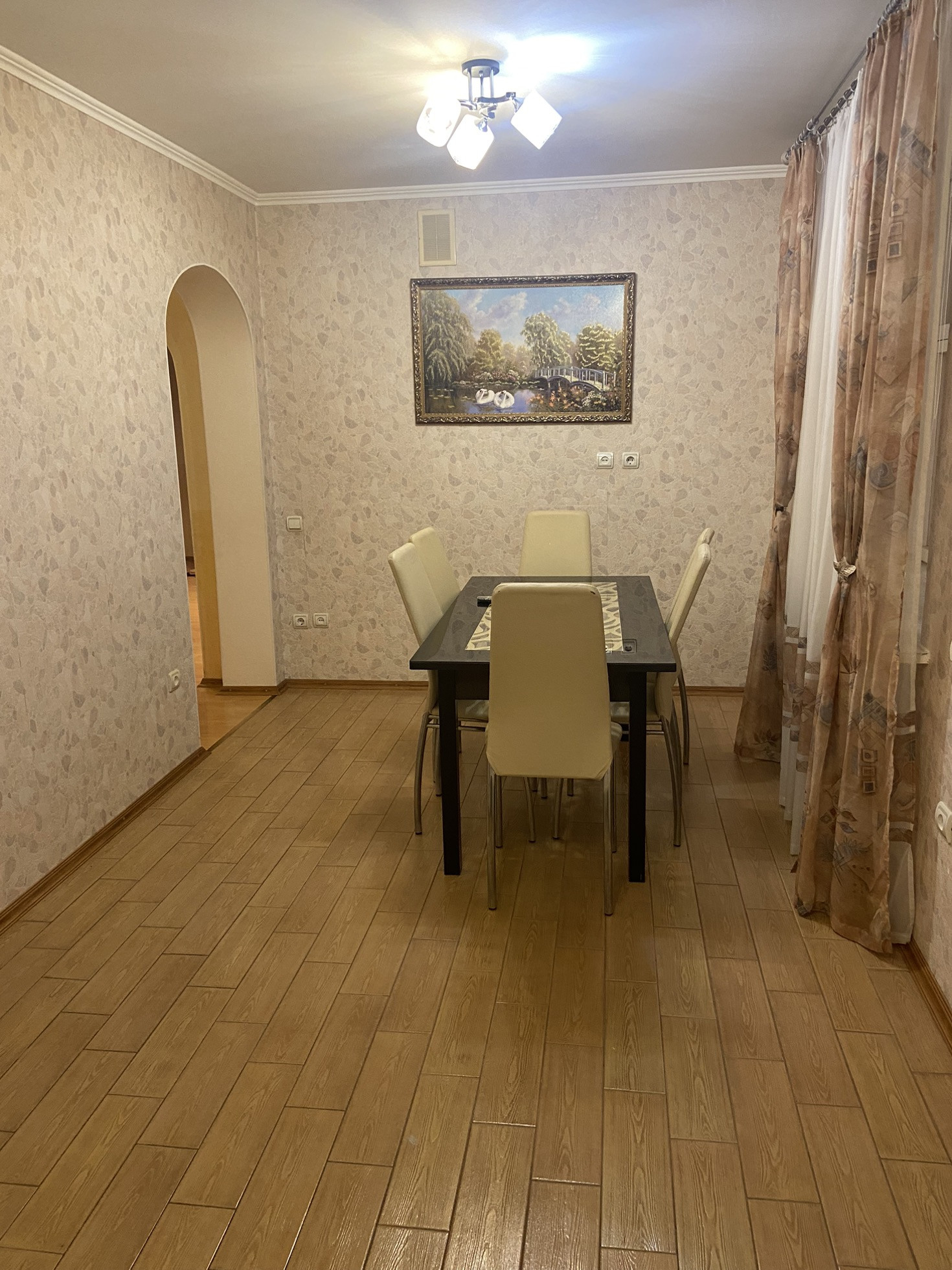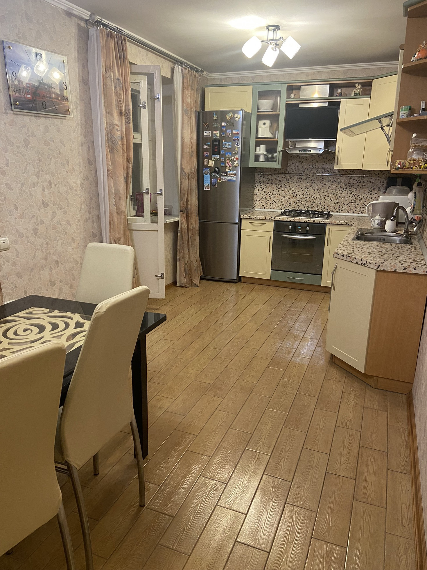 Продается удивительная планировки 4-х комнатная квартира , общей площадью 130.4 кв м , расположенная на 5 этаже / 5 этажного кирпичного дома . В квартире 4 жилые комнаты : гостиная 26.2 кв м ; три спальни 20.7;14.6 и 12.8 кв м , кухня площадью 15.7 кв м , кухонный гарнитур остается , два санузла - большая ванная комната с отделением для стирки белья , площадью 13.8 кв м и отдельный гостевой туалет , площадью 3.8 кв м . Шикарная квадратная прихожая , площадью 10.5 кв м . С одной стороны квартиры имеется балкон с видом на наше Плещеево озеро , с другой стороны лоджия , площадью 6.9 кв м . Есть гардеробная для хранения хозяйственных вещей , одежды и обуви . Квартира с хорошим ремонтом . Заезжай и живи ! Все с душой сделано : стены - светлые обои , полы - ламинат , в санузлах - благородная плитка с прекрасными эскизами , сантехника все в рабочем состоянии и в порядке , межкомнатные двери , все гармонично сочетается с общим рисунком квартиры и интерьером . В большой и просторной кухне - столовой имеется красивый , вместительный и очень удобный кухонный гарнитур с современной техникой и выделенной обеденной ( трапезной) зоной , где можно как собираться всей семьей , родственниками , так и гостями . Все коммуникации : газ , холодная и горячая вода , отопление - центральное . В ванной комнате и на кухне , на случай профилактического отключения горячей воды , имеются водонагреватели . В ванной комнате так же имеются теплые полы . Квартира теплая , удобная , комфортная , просторная , находится в центре дома крыша не имеет проблем . Чистый и благоустроенный подъезд . Тихие и хорошие соседи , что не менее важно . Сам дом находится в микрорайоне с развитой инфраструктурой, все в шаговой доступности : все виды магазинов , школа , сад , шиномонтаж , автомойка , аптеки , офисы вайлбирис и озон , офис медцентра . Квартира продается в связи с переездом . С продажей не тороплюсь . Звоните , пишите , покажу квартиру в удобное , обговоренное время .