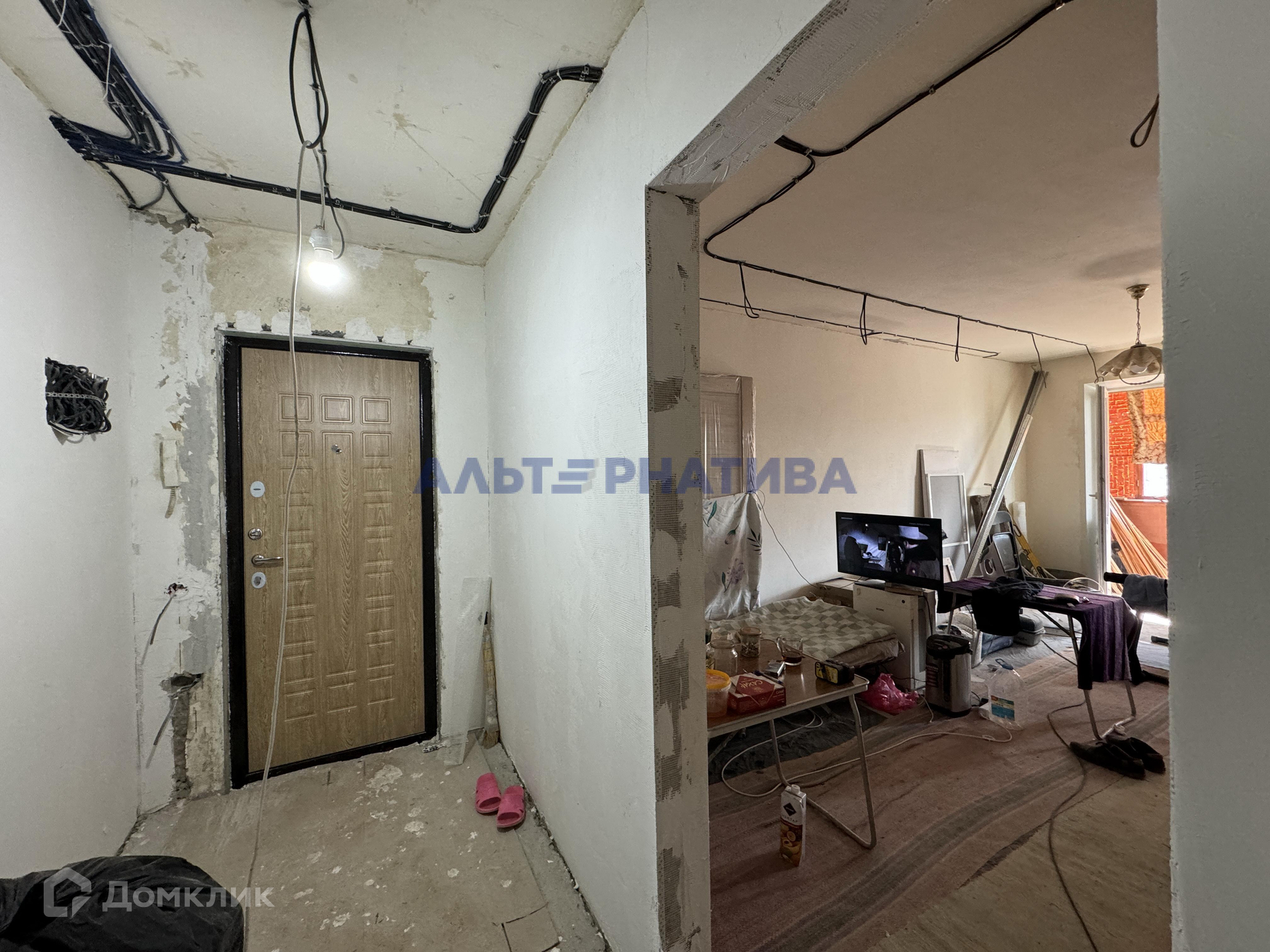 В квартире проведен предчистовой ремонт под обои или покраску. Во всей квартире заменена проводка, залиты полы под ламинат, в прихожей и в ванной комнате теплый пол, установлена новая ванная (заклеена транспортировочной пленкой), установлена новая сантехника. Для завершения ремонта ванной комнаты есть вся плитка для стен, пола и новые двери. В кладовке выведены розетки для бойлера и все коммуникации для стиральной машины. Имеется балкон, выход с комнаты.