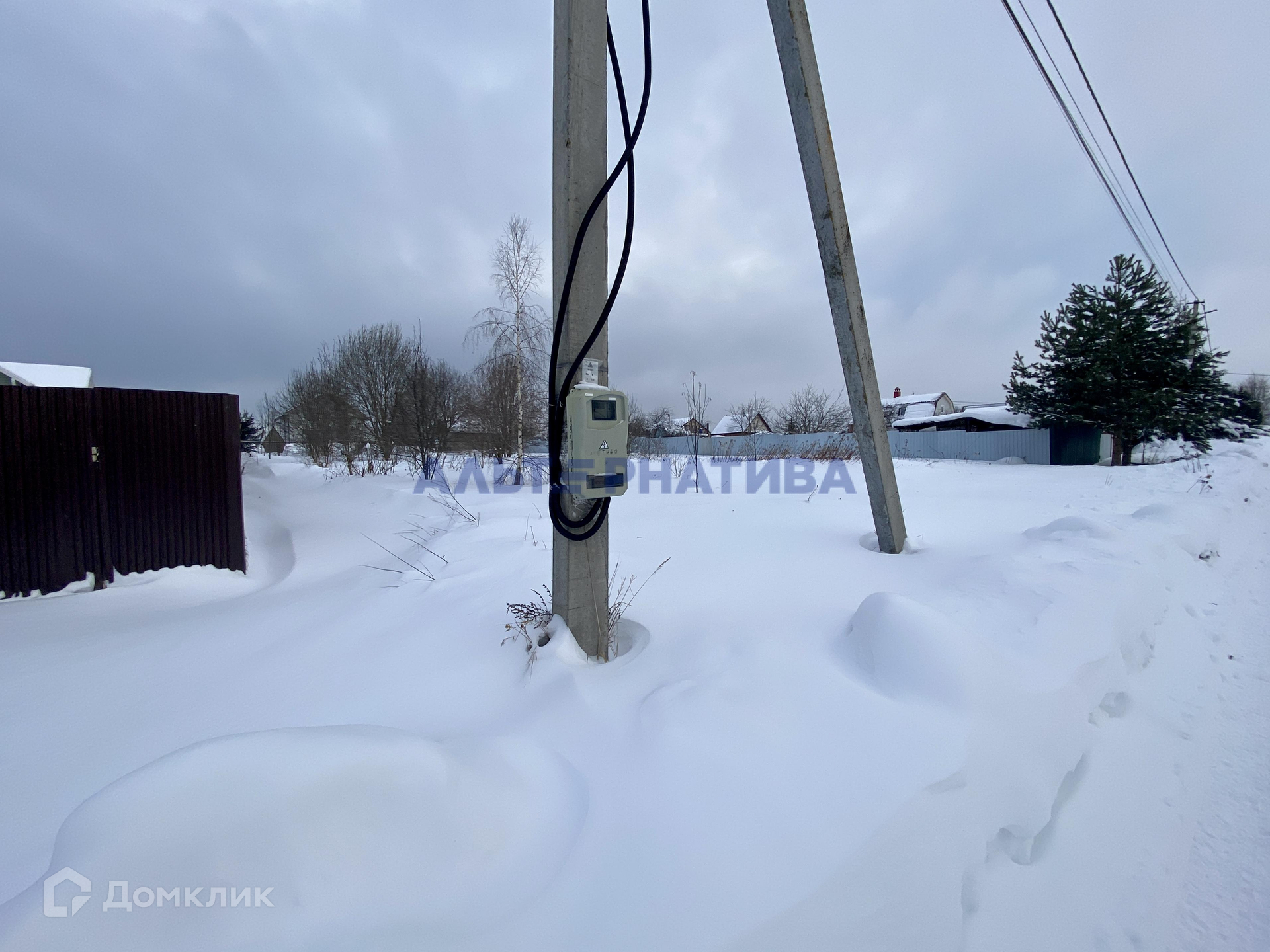 Из коммуникаций: подключенное электричество, столб с щитом по границе участка. Есть возможность подведения газа.