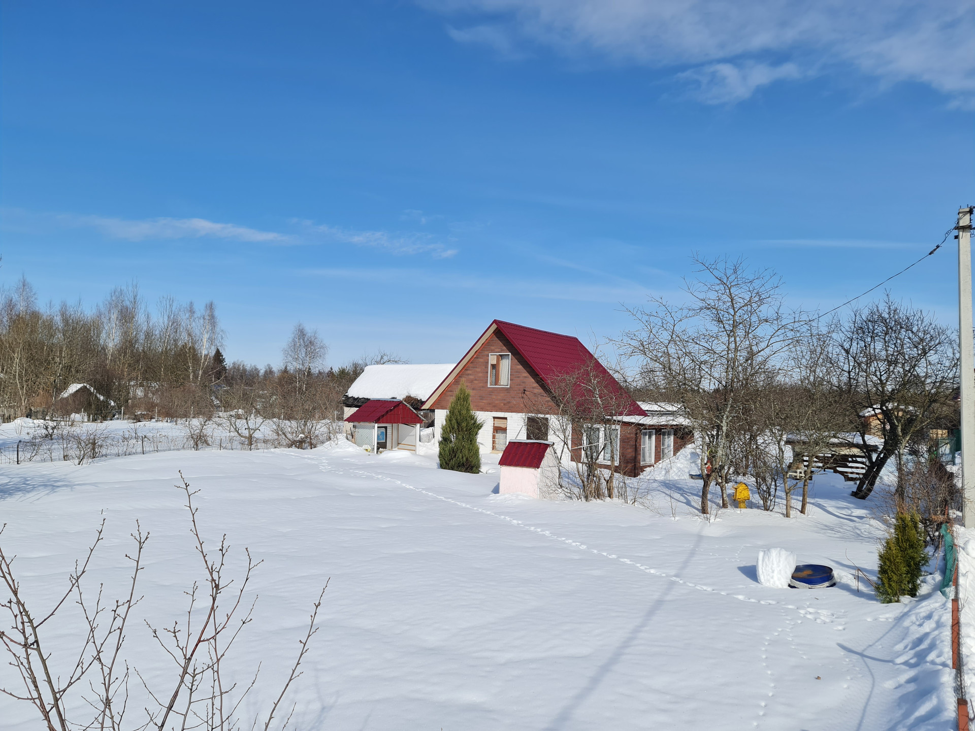 Дача представлена следующими коммуникациями – это скважина с водопроводной трубой, оборудованной греющим кабелем, электричество (счетчик Матрица), автономная канализация (переливной септик). Все коммуникации заведены в дом. На участке предусмотрен вывод воды для летнего полива.
