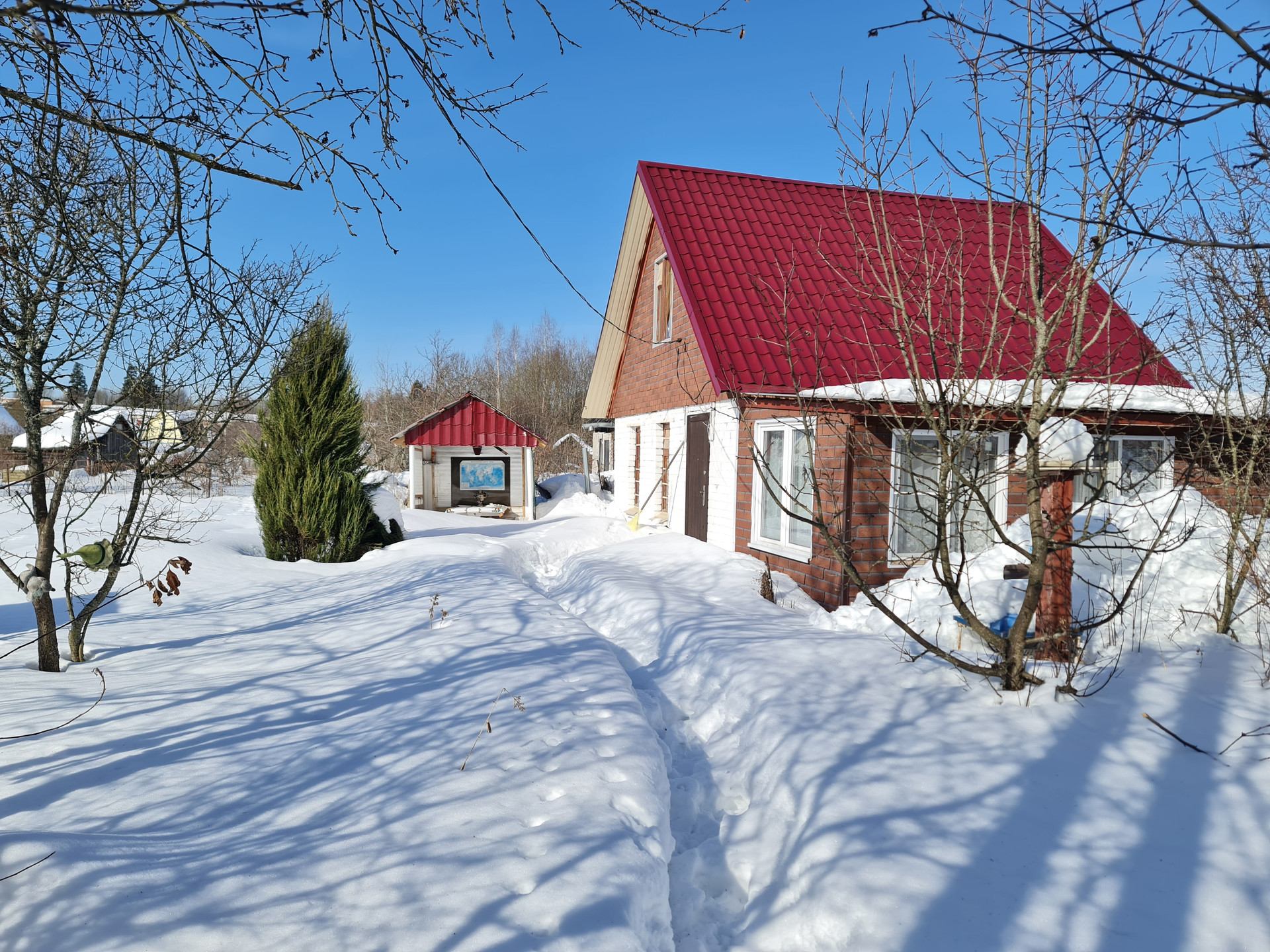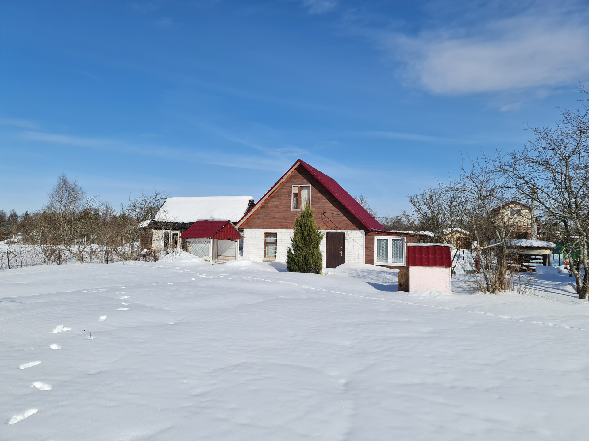 Дачный дом построен в 2021 году. Он признан жилым, поэтому в нем можно зарегистрироваться по месту жительства.
