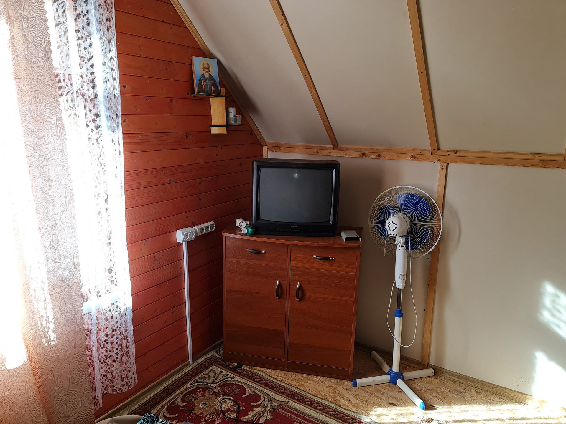 Первый этаж дома выполнен из кирпича и утеплен. Второй этаж дома бревно.
