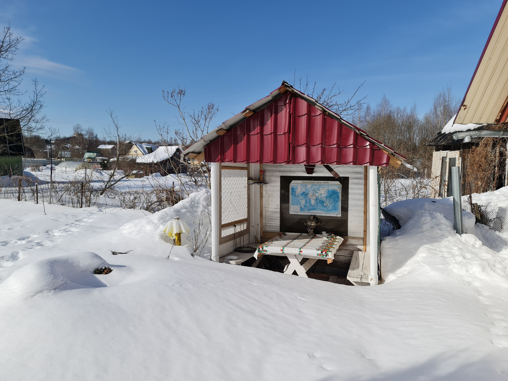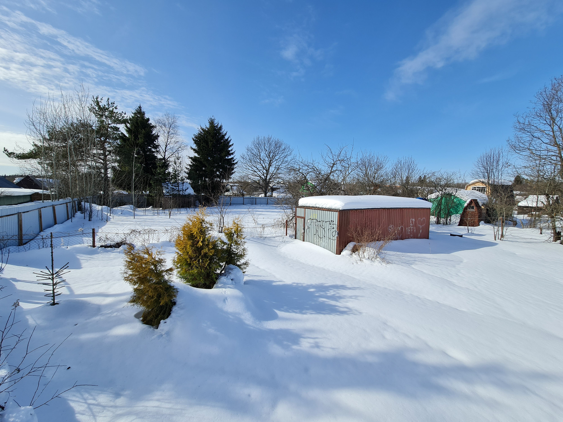 В стоимость участка также входят летняя беседка, дровница и морской контейнер, который можно использовать, как под гараж, мастерскую или помещение для садового инвентаря. Есть летний санузел и душ. На участке много фруктовых деревьев и кустарников.