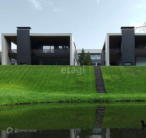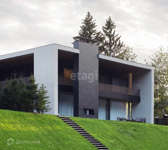 На крыше терраса с зелёным газоном. Открытая веранда с уличным камином. Панорамное остекление. Собственный земельный участок. Ухоженные газоны с зелёными елями. Современная архитектура отлично вписывается в естественный ландшафт. Приватная охраняемая территория.