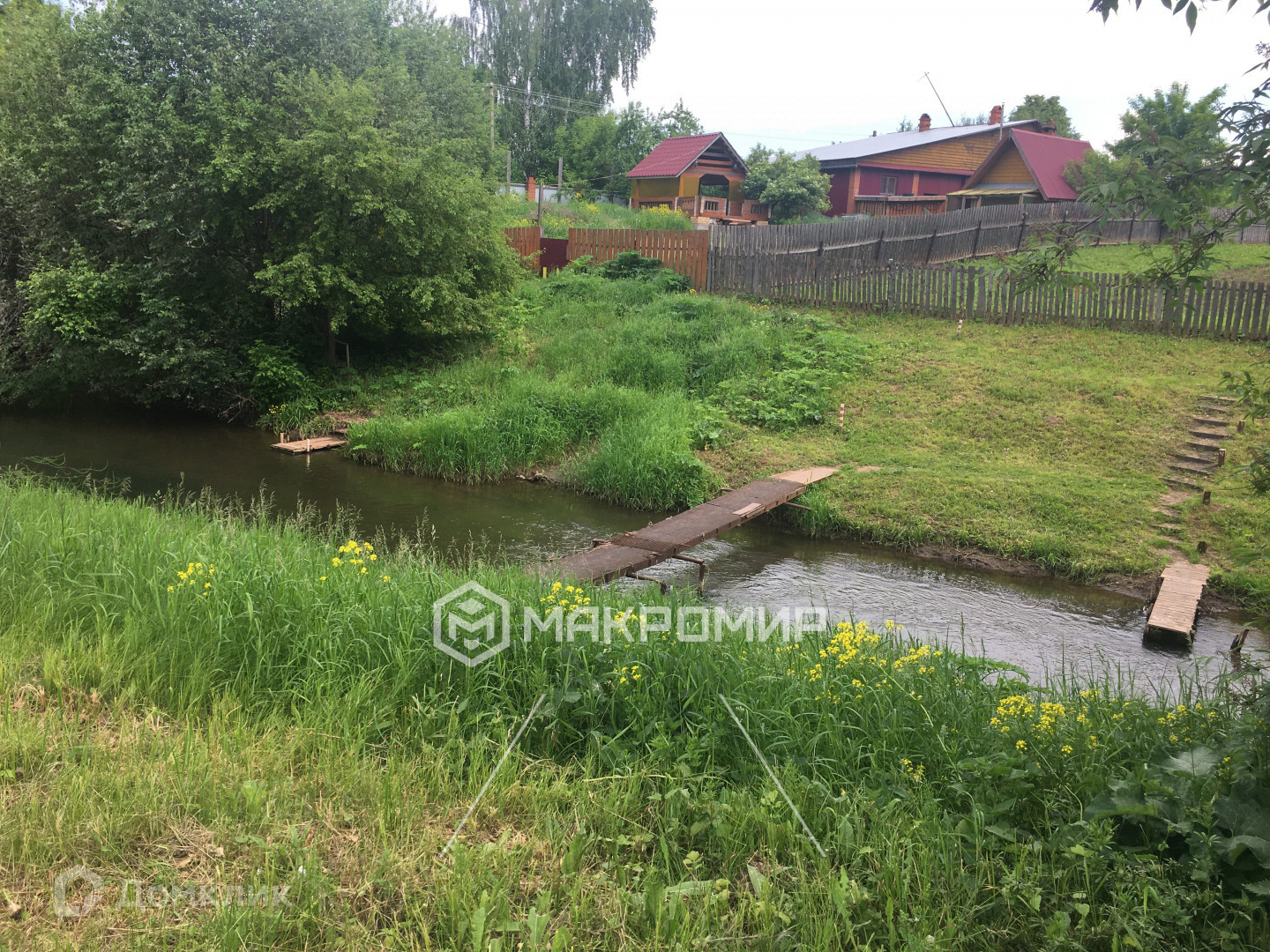 Дом расположен на участке с прямым выходом к речке, которая огибает с двух сторон. Тихое уютное место, чистый воздух.