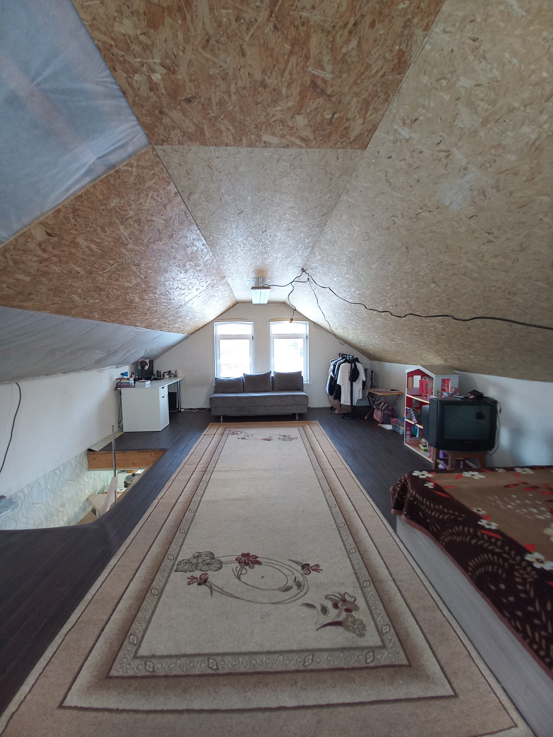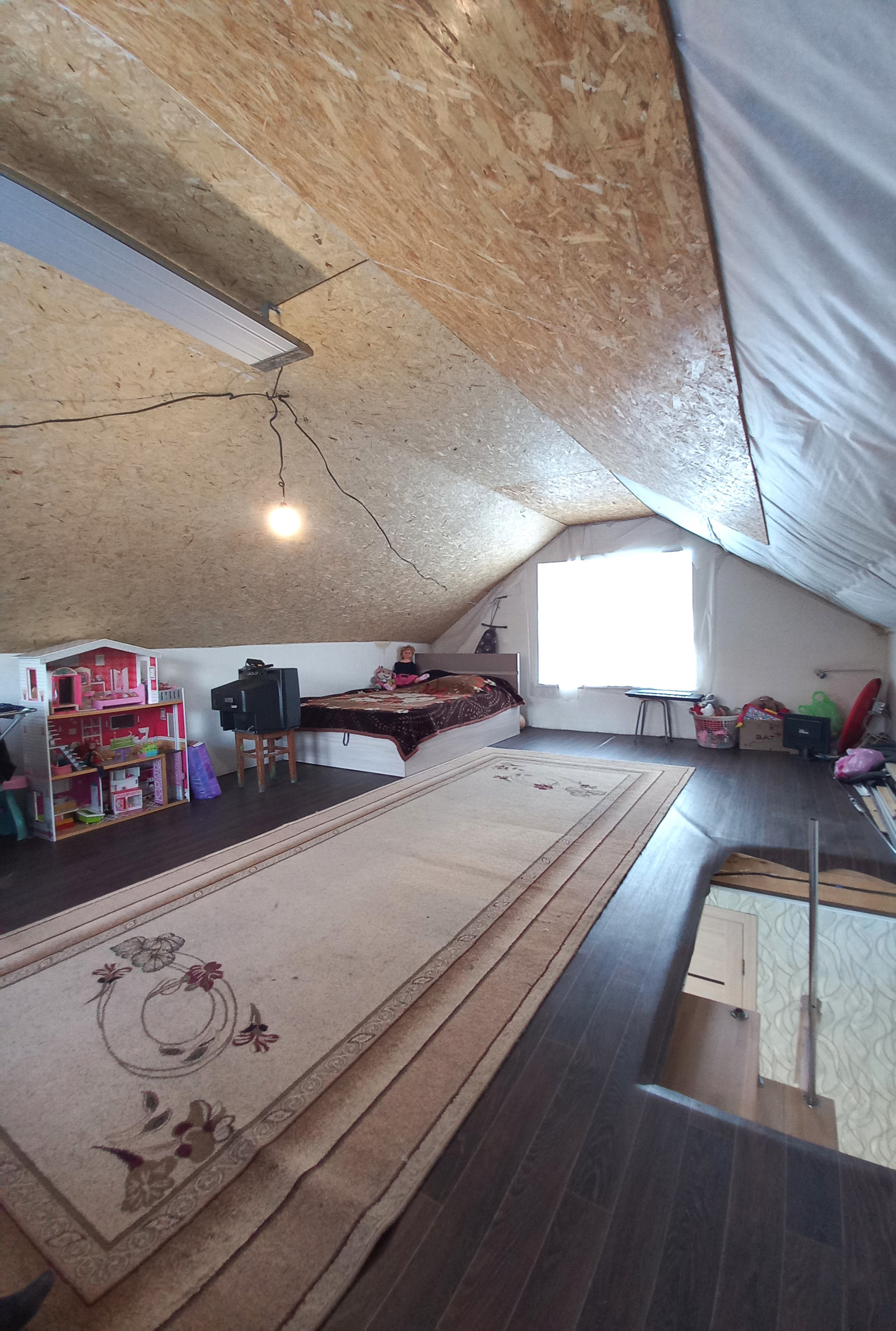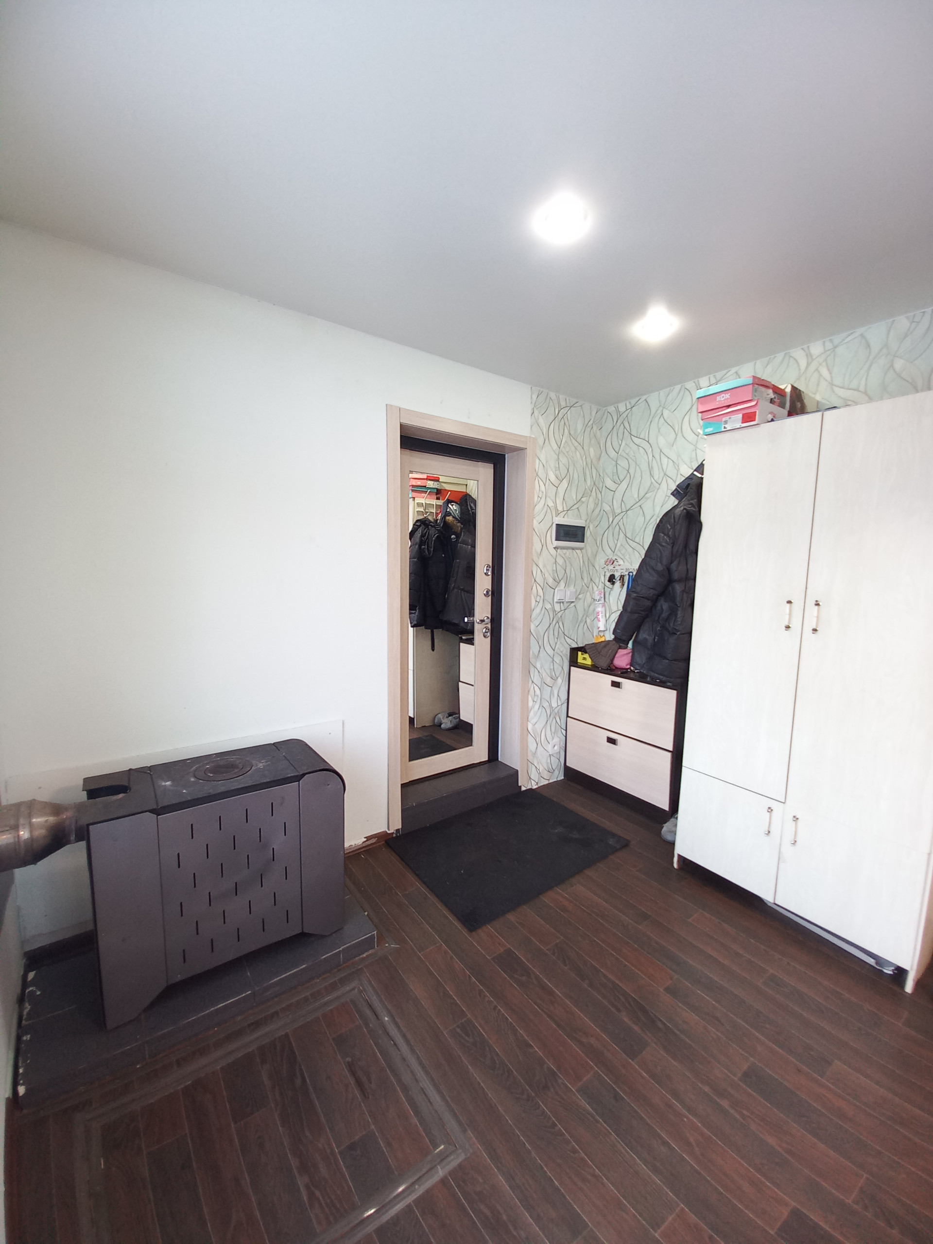 Дом двухэтажный. На первом этаже кухня-гостиная, санузел. На втором этаже предполагается 2 комнаты (отделочные работы не завершены). Под полом 1 этажа - погреб, коммуникации. Отопление печное + инфракрасные теплые полы на 1 этаже. Электроснабжение центральное. Водоснабжение - скважина 39 метров, в санузле установлен накопительный водонагреватель, на кухне проточный водонагреватель. Канализация автономная, септика на 2 кольца + 2 кольца в запасе.