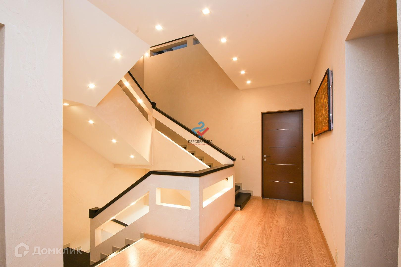 •.На второй этаж ведет лестница из массива липы с подсветкой, где находятся светлые гостевые и хозяйская спальни с гардеробными. Пол из португальского ламината, двери и освещение производства Испании. В двух ванных комнатах итальянские джакузи и окна для естественного освещения.