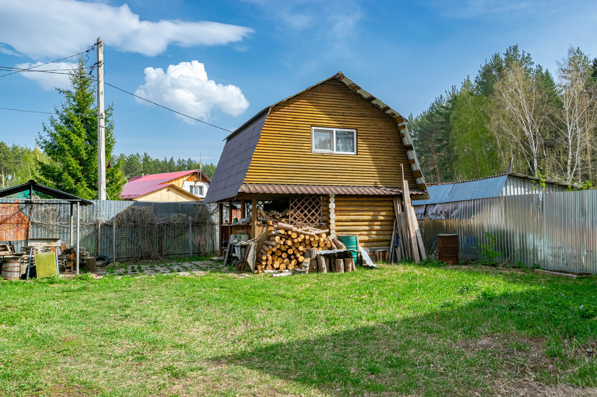 Баня с комнатой отдыха на втором этаже. Для удобства в баню проведен водопровод. Есть овощная яма и сарай.