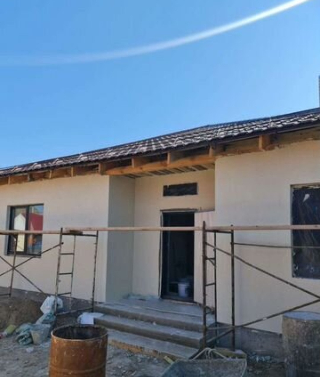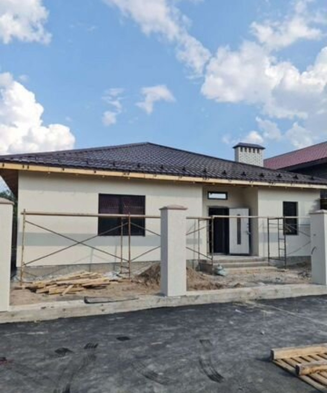 Дом 150 кв.м, стены-керамзитный блок, наружная отделка- декоративная штукатурка. В доме 4 комнаты, кухня 23 кв.м, сауна, отделка под чистовую. Коммуникации: электричество, вода-скважина, канализация-центральная, газ.