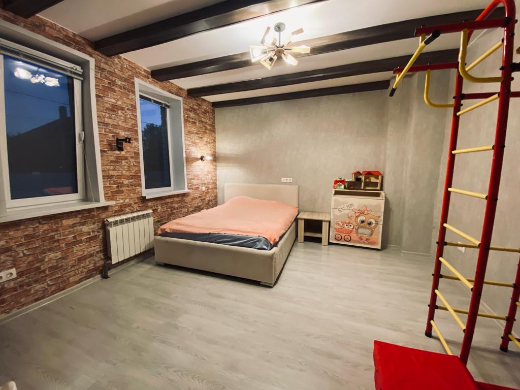 Первый этаж включает в себя кухню, просторную гостиную, 2 спальни, 2 санузла, техническое помещение. Второй этаж – это четыре комнаты. В доме ж/б перекрытия. Просторный гараж для автомобиля. Отопление - газовый котел. На участке есть посадки и две теплицы, а также место для отдыха: детская площадка, бассейн, качели. В шаговой доступности магазины, ближайшая остановка в 5 минутах ходьбы. Документы готовы, дом введён в эксплуатацию в 2015 году. Ровный земельный участок.