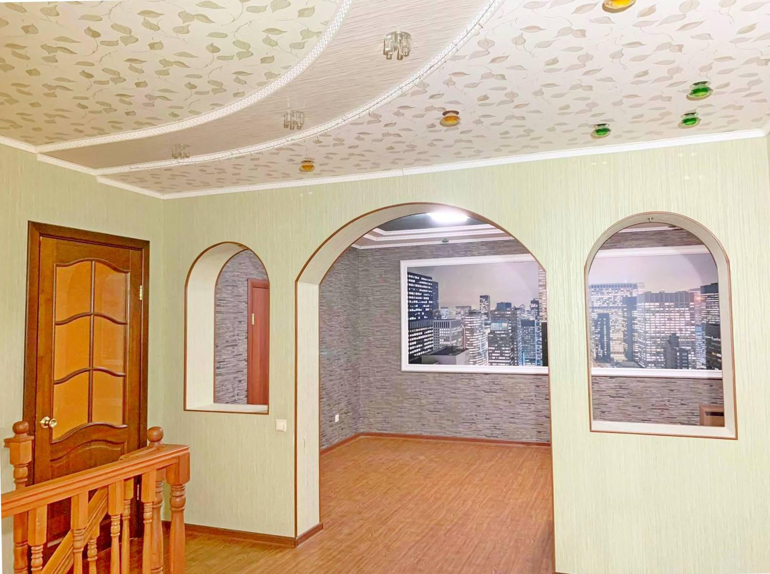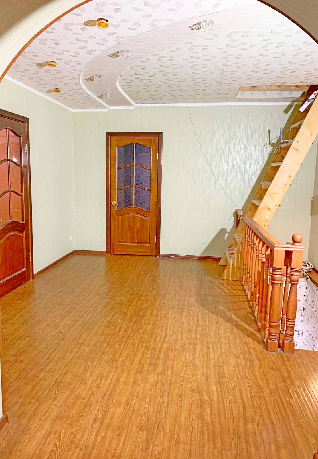 Первый этаж: кухня-гостиная, зал, прихожая с деревянной лестницей на второй этаж, гараж, комната – теплая веранда и одна комната в состоянии ремонта «под чистовую» - для вашего личного дизайна!