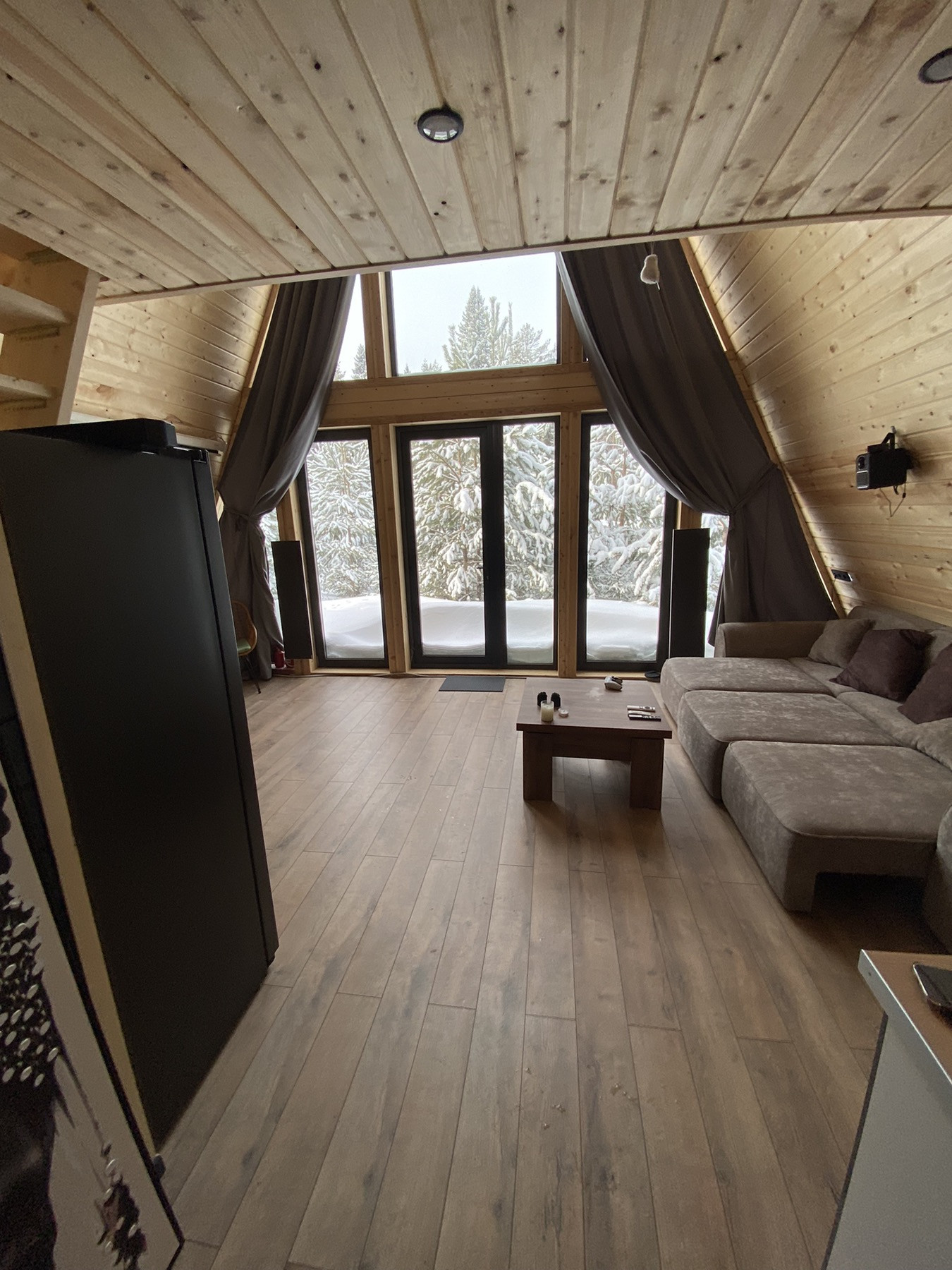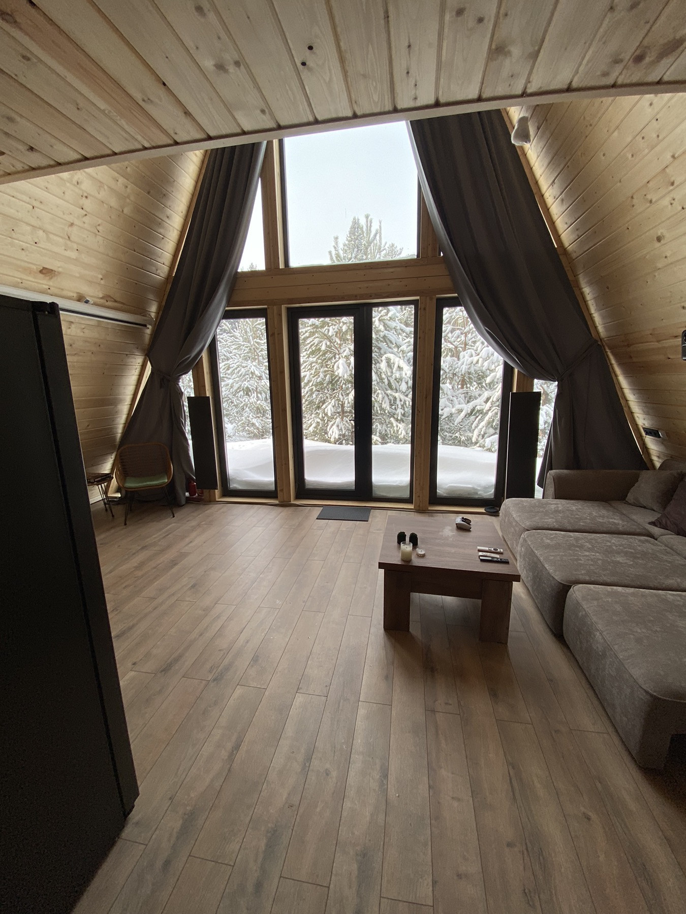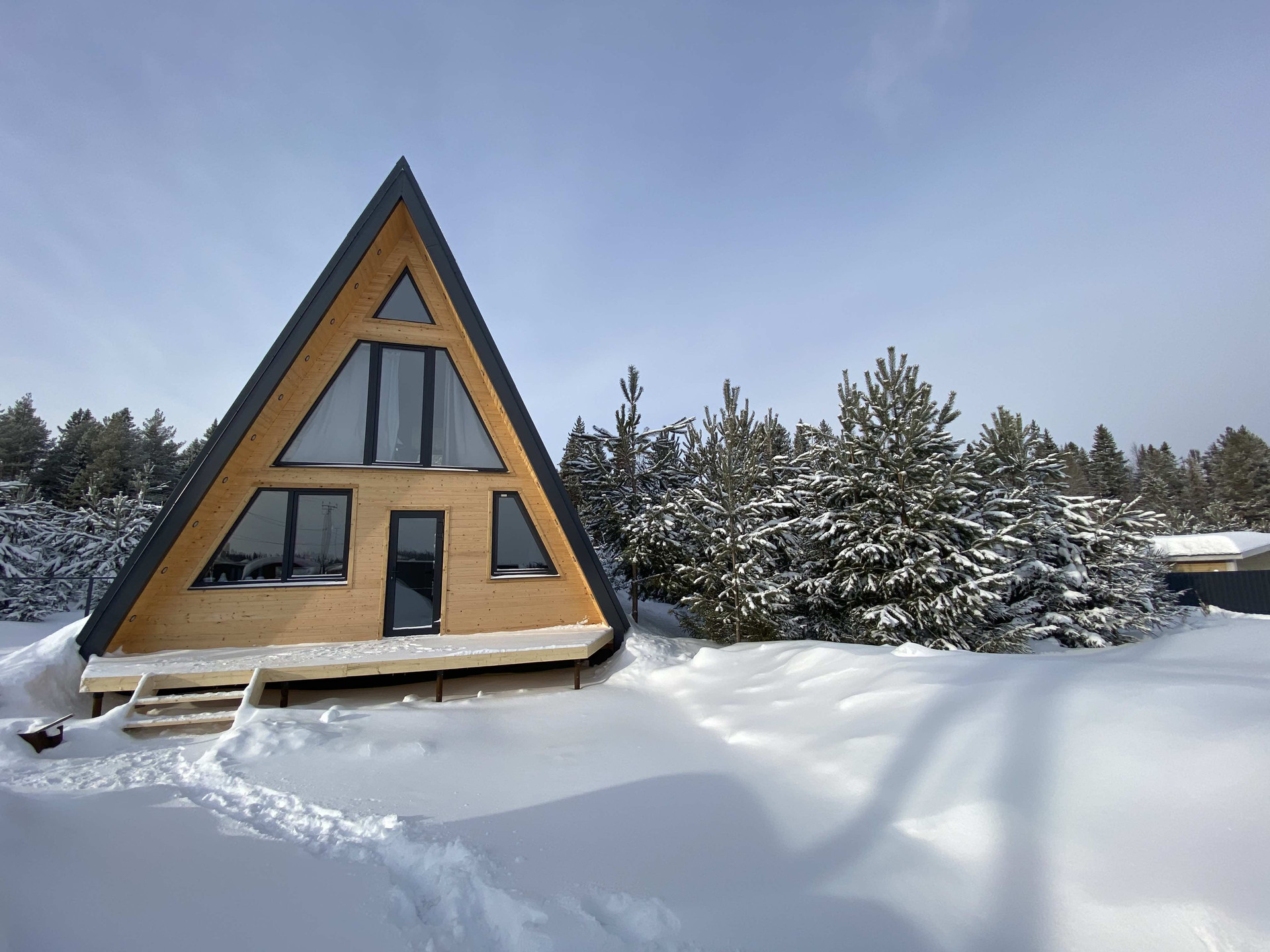 Дом 7,5*9; входная панорамная дверь; панорамные окна; большая терраса: 22м2.