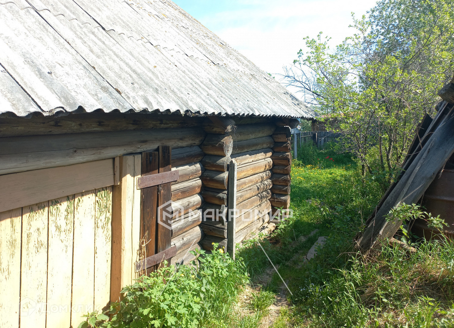 Дом не новый, но построен из хорошего бревна, на бетонном ленточном фундаменте. Жилая площадь 30 метров, но помимо этого в доме есть множество подсобных помещений: сени, летняя веранда, чулан для хранения, большая хозяйственная пристройка с сеновалом, помещениями для животных. Есть отдельно стоящий свинарник.