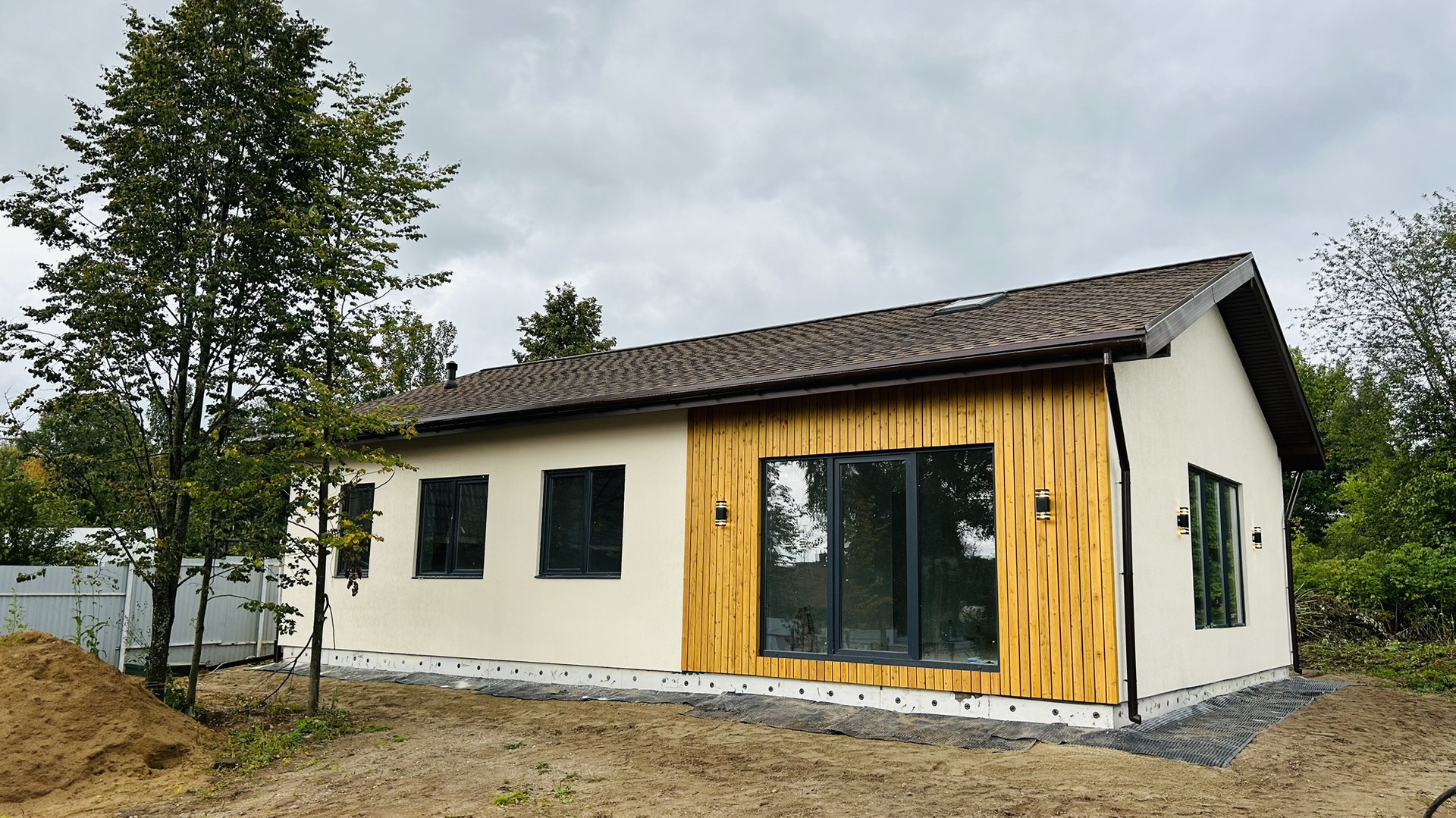Конструктив: фундаментная плита, стены газоблок+утеплитель, кровля гибкая черепица, окна Рехау.
