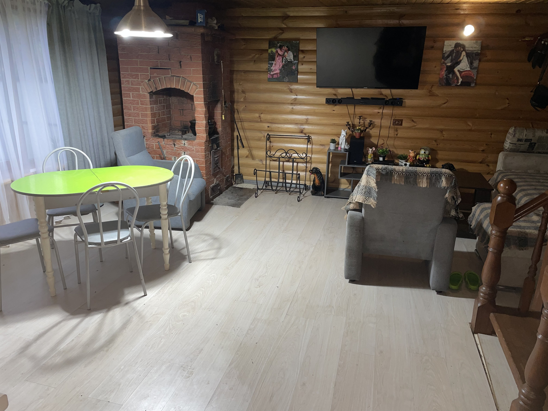 - В доме большая кухня гостиная ,сан узел,на втором этаже 2 комнаты, большая лоджия по периметру дома.